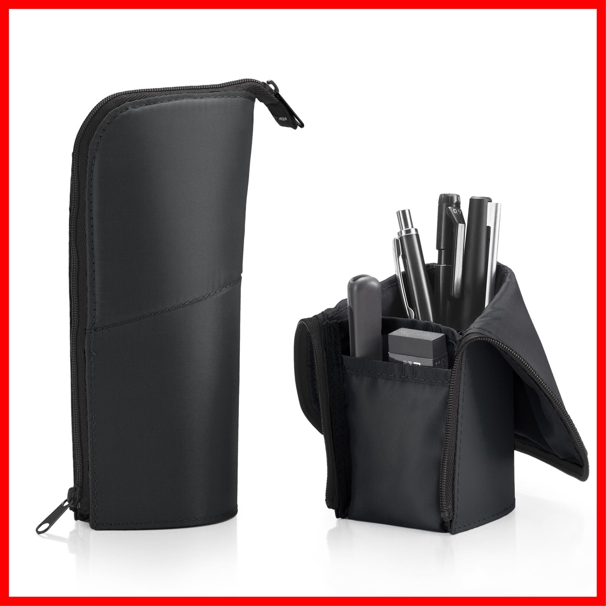 【POINT1:上部を折り返してペンスタンドに早変わり。】中身の収容物が探しやすく取り出しやすい立つペンケース。ペンスタンドとペンケースの両用途で使えるためオフィス等で便利。