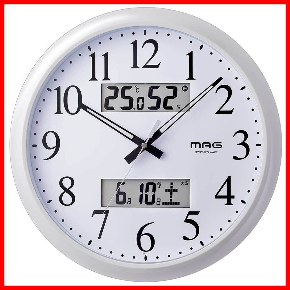 MAG(マグ) 掛け時計 電波時計 アナログ ダブルリンク 環境目安表示機能付き 温度 湿度 日付 曜日表示 ホワイト W-711WH