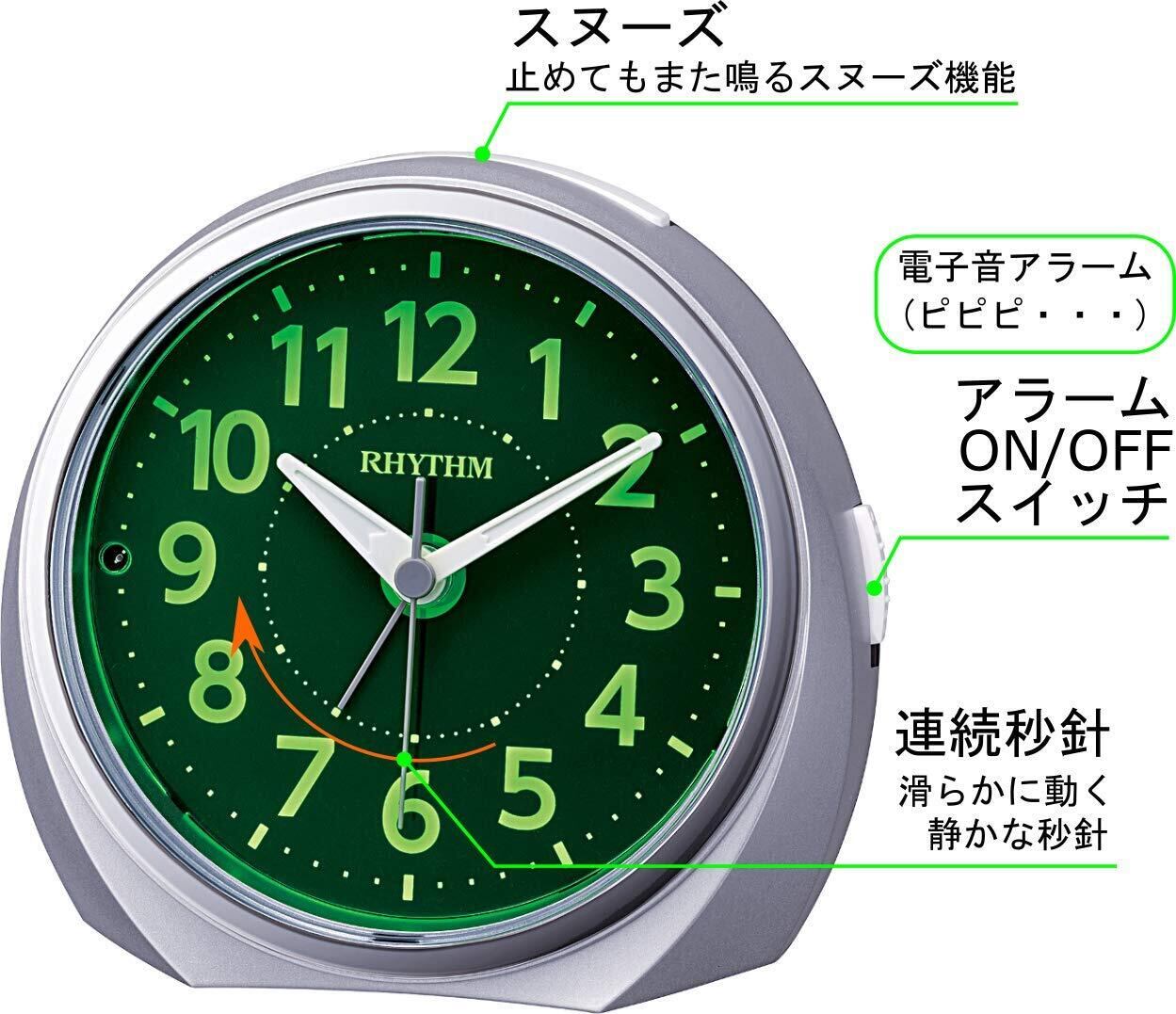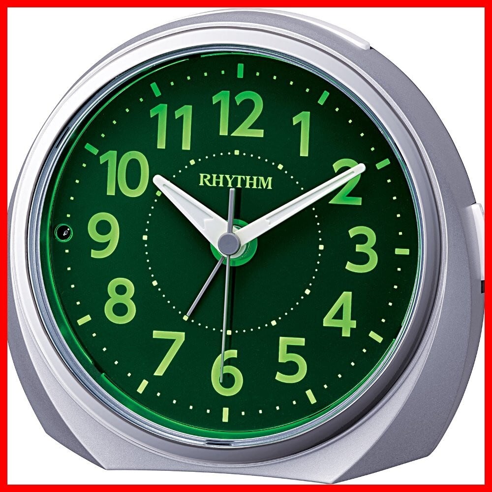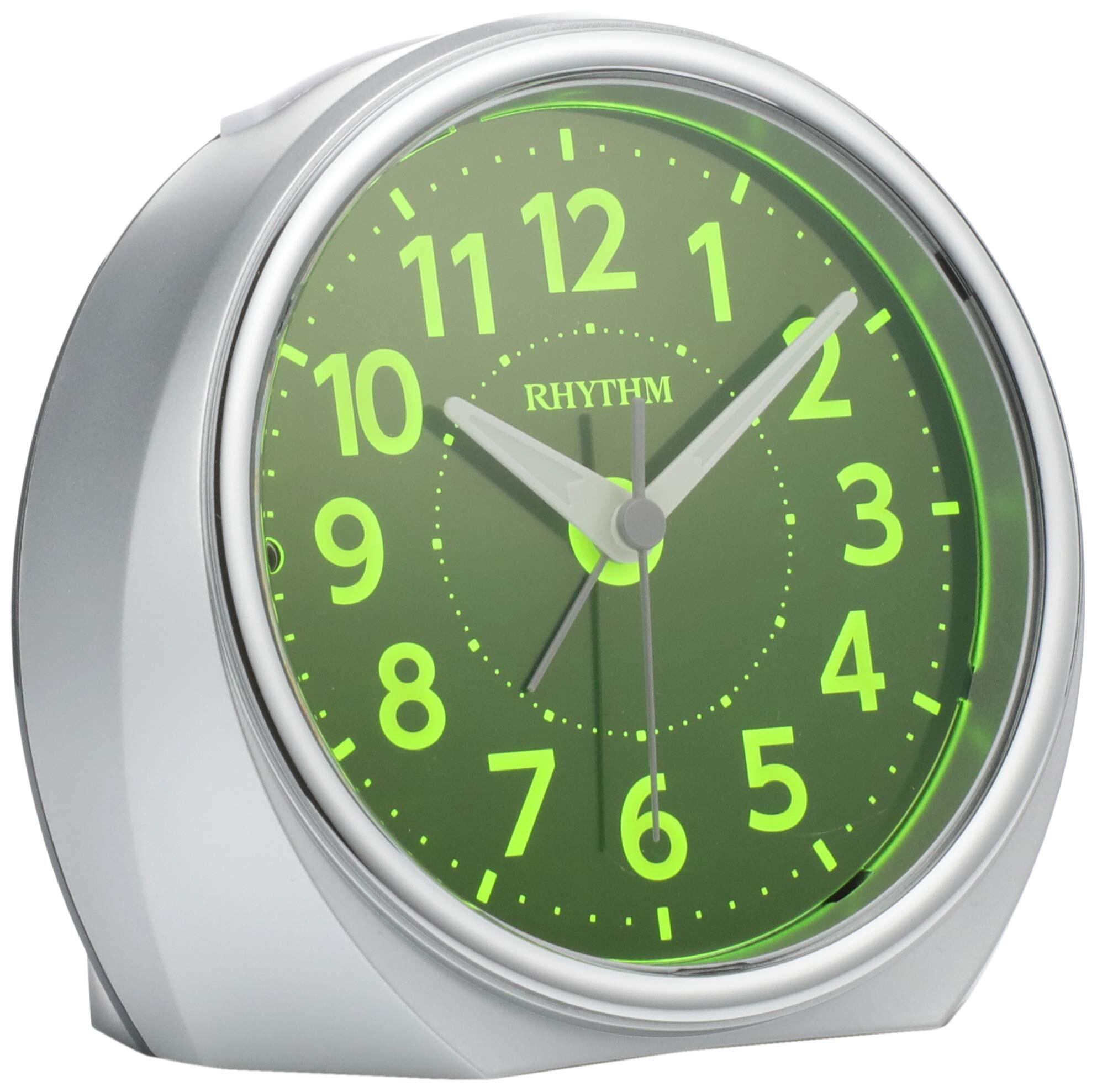 リズム(RHYTHM) 目覚まし時計 アナログ ルークR666 夜見える 暗所 ライト 自動 点灯 連続秒針 集光 文字板 電子音 アラーム 銀色 RHYTHM 8RE666SR19 | hananoki