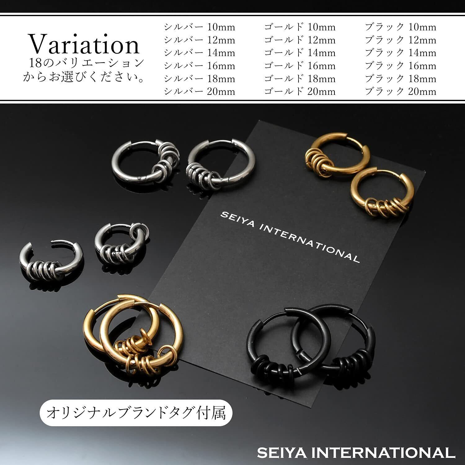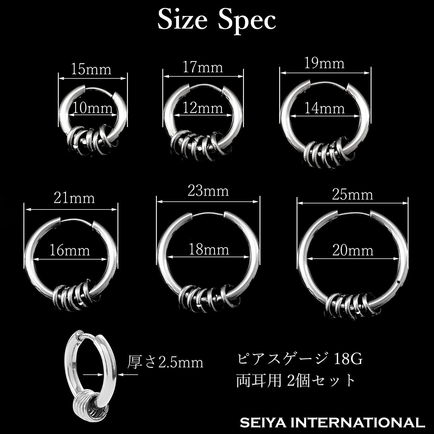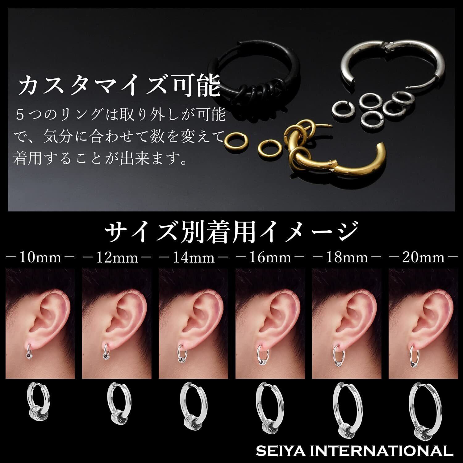 【セイヤインターナショナル】ピアス メンズ レディース 5連リング リング フープピアス フープ 両耳セット (黒18mm)