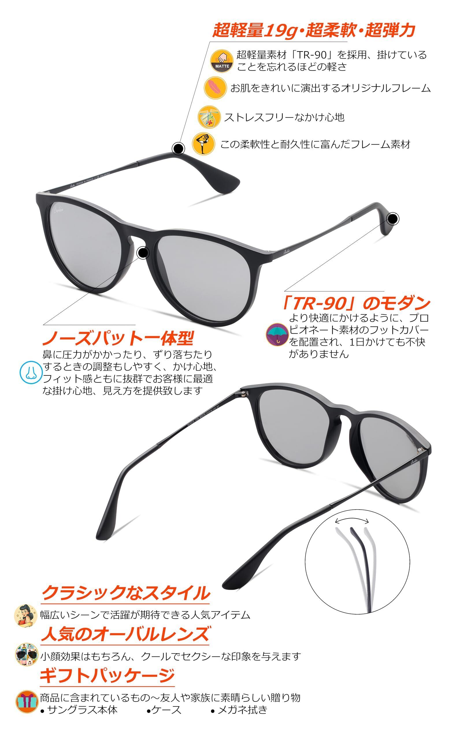 [Berikin] サングラス 超軽量19g 偏光レンズ メンズ レディース UV400 UVカット 紫外線カット エリカ sunglass for men women