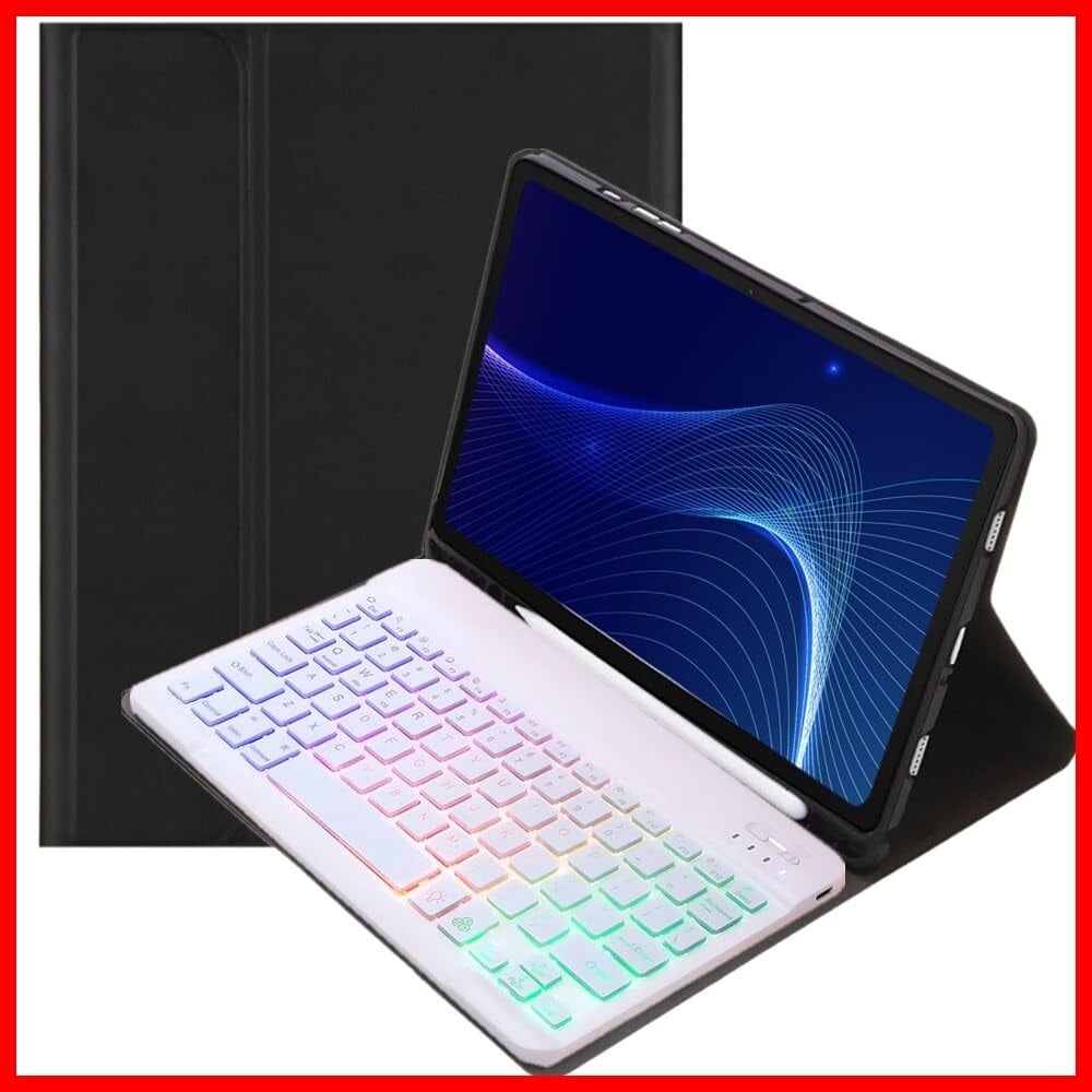 カラフルバックライト付き iPad 9.7インチ iPad 第6世代 第5世代 Air Air2 iPadPro9.7 キーボードケース お洒落 可愛い キーボード ケース マグネット分離式 光るキーボード 学生 ビジネス,黒+白 | hananoki