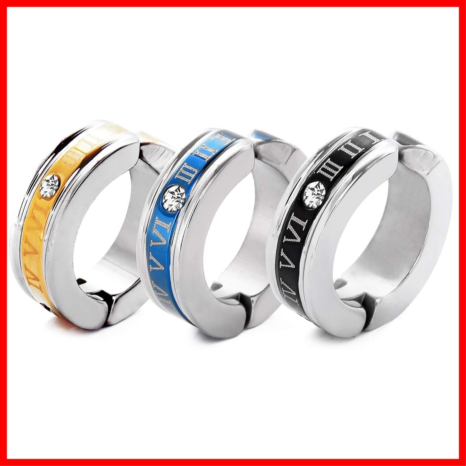 【 おしゃれなローマ数字&キュービックジルコニア 】フェイクピアス本体にはローマ数字が列をなし中央にはきらりと輝くキュービックジルコニアが、天然ダイヤモンド のように輝き透明感と高級感を演出してくれます。CZダイヤ(キュービックジルコニア)は透明で屈折率がダイヤモンドに近い為、代替品としてジュエリーやアクセサリーに用いられています。非常に美しい輝きを放ち、貴方の魅力をより一層引き出します。ステンレスにすることにより高級感のある輝きを表現し、ブルー、ゴールド、ブラック、それぞれの色が一番映える素材にしました。シンプルなデザインが多いフェイクピアスの中、存在感抜群のこのローマ数字デザインのフェイクピアスはあなたの耳元でおしゃれに輝きます。