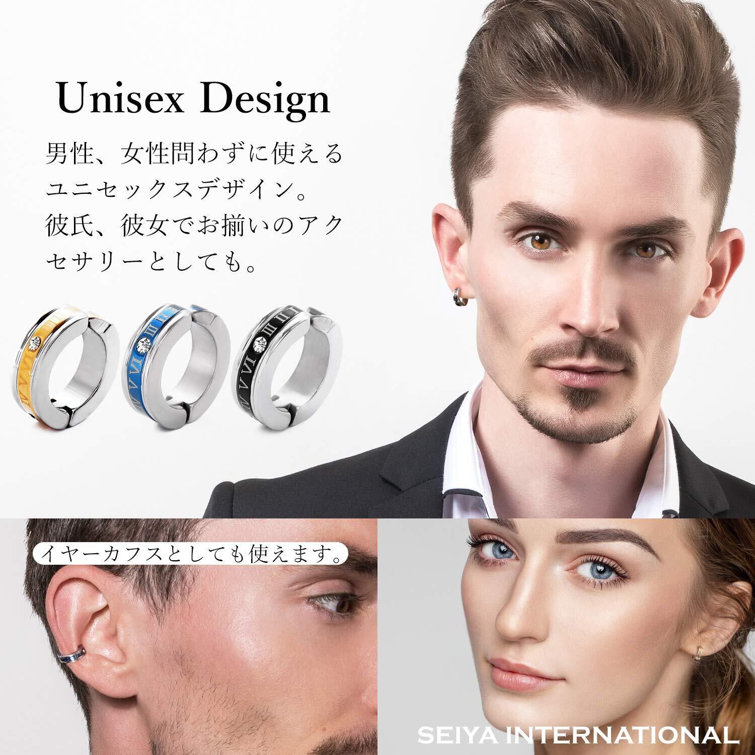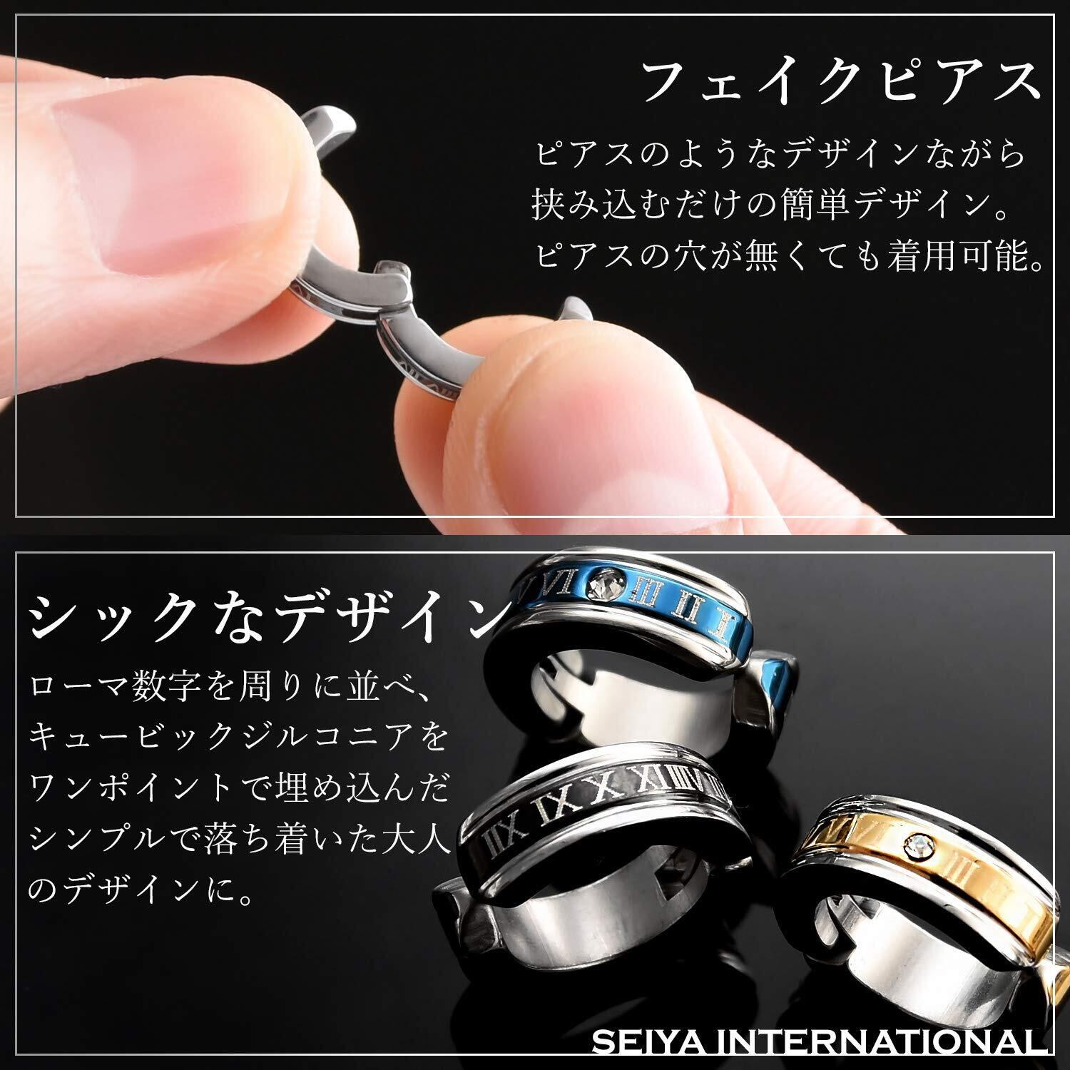 [SEIYA INTERNATIONAL] フェイクピアス メンズ イヤリング イヤーカフ イヤカフ ピアス風 アクセサリー ノンホールピアス レディース ローマ数字 ステンレス シンプル フープ 3色セット (片耳3個セット)