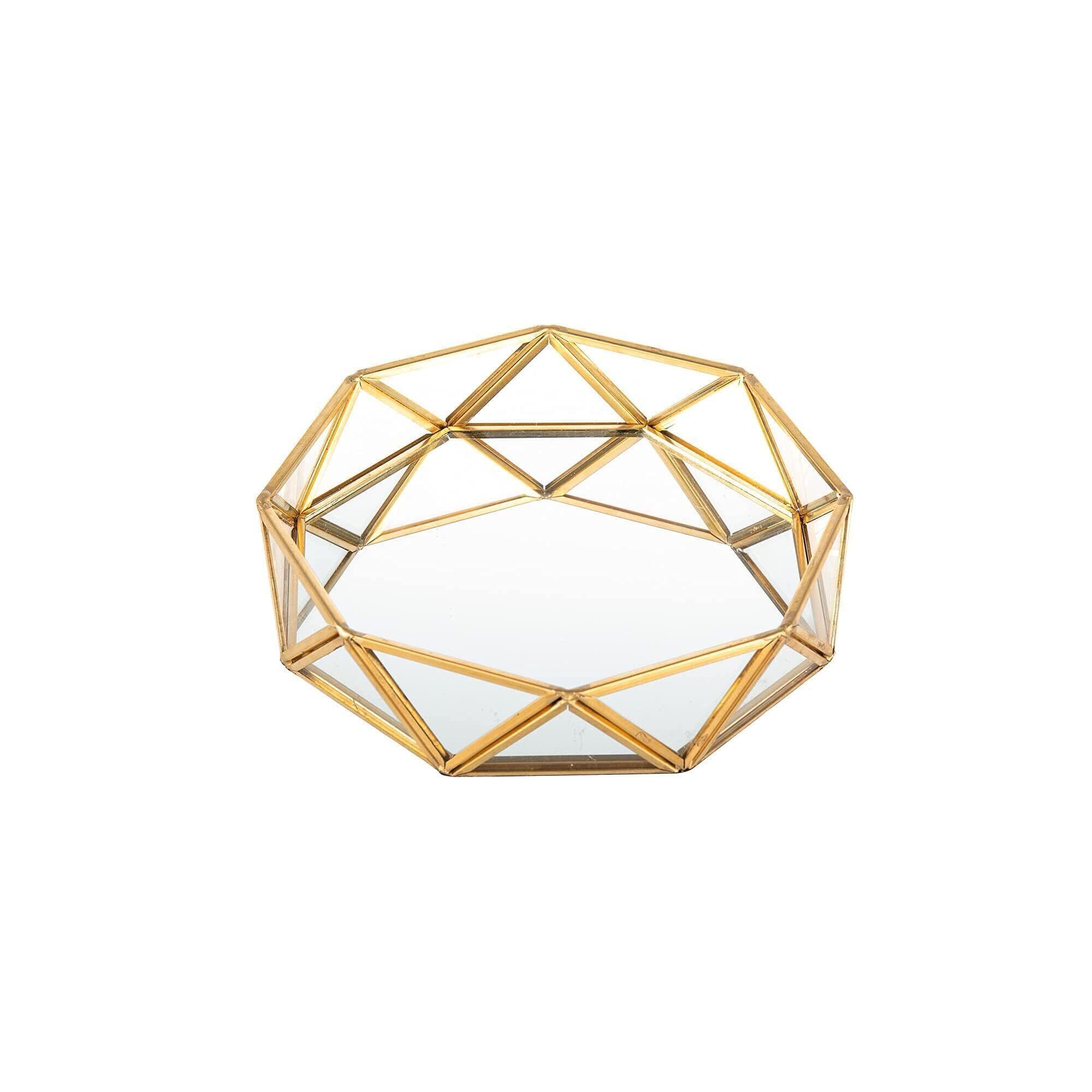 Feyarl ガラストレイ ミラートレー 置くトレイ小物収納 香水 ディスプレイ ゴールド (18cm)