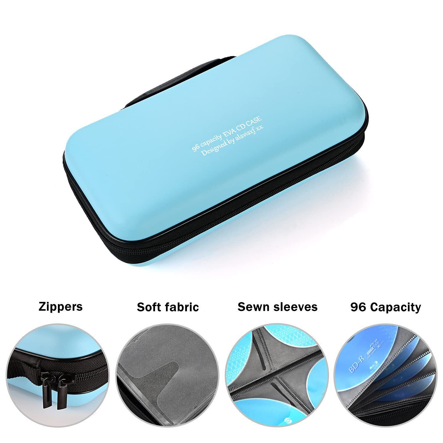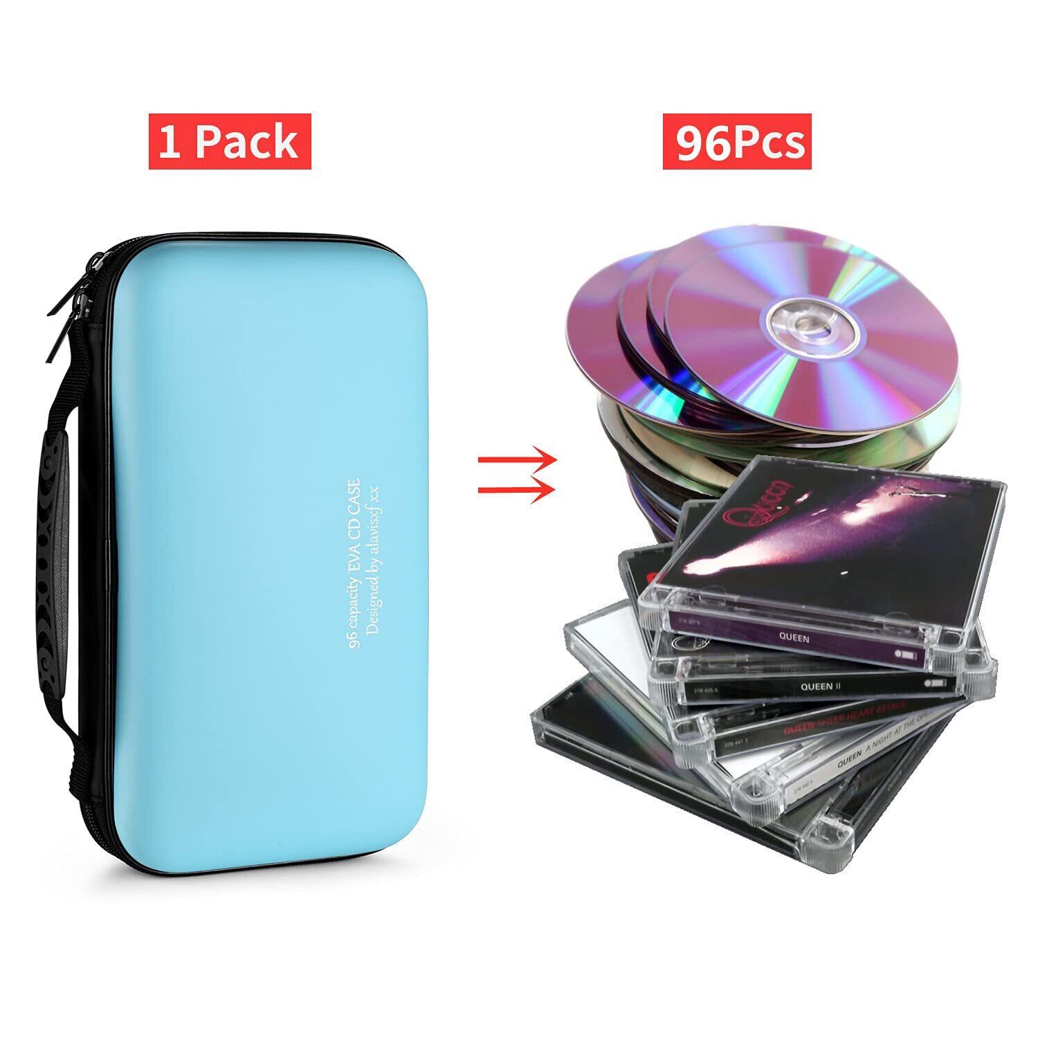 96枚収納 CDケースポータブルEVA blu-ray ディスク収納ケース 大容量 DVD/VCD 収納 (96枚, スカイブルー 96)