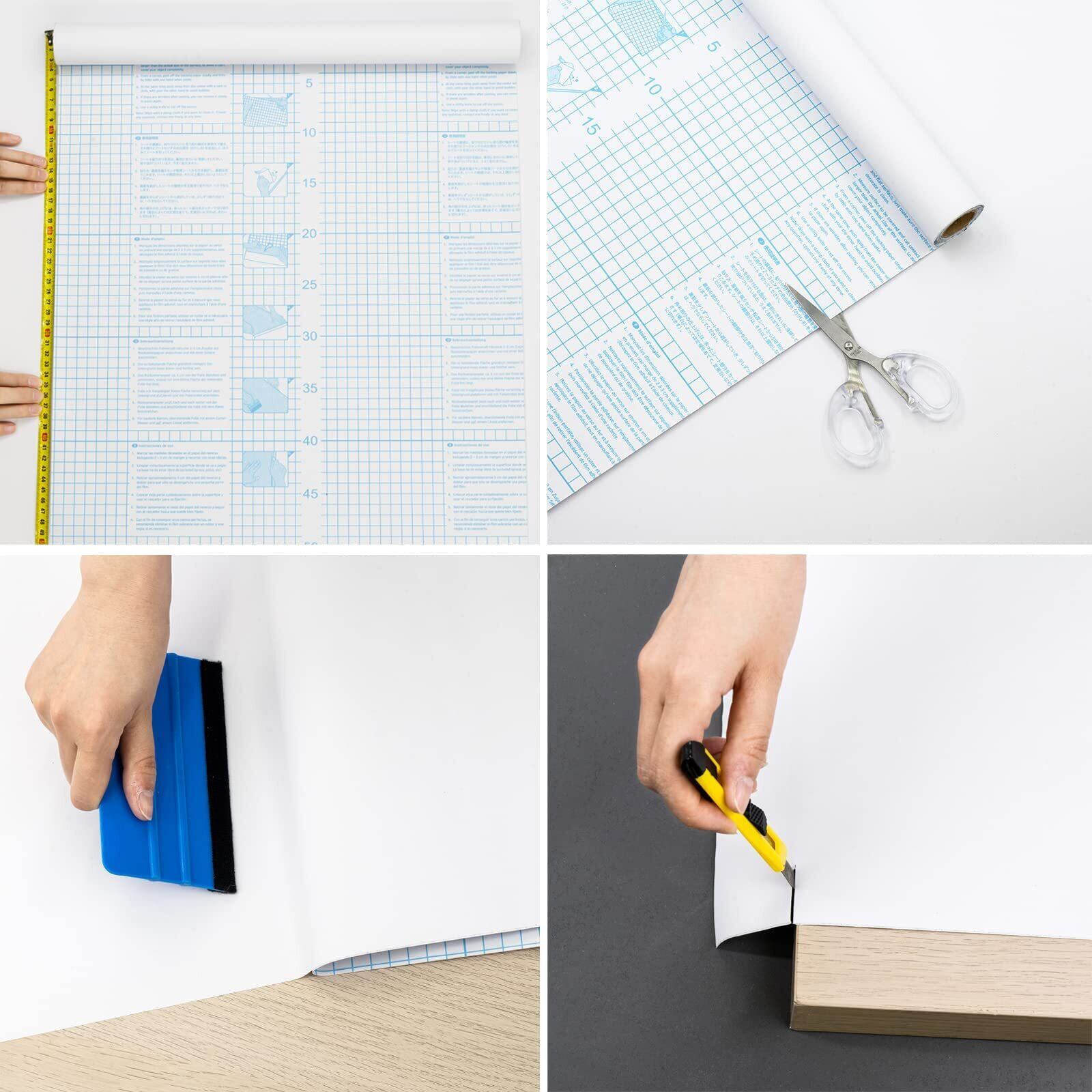リメイクシート 白【自己粘着性】リメイクシートは自己粘着で、追加の接着剤がなく、ただ剥がして貼り付けるだけです、裏面にグリッド線があり、測定とカットが簡単で、ハサミで必要なサイズと形にカットすることができます。(注:2〜3センチ余分に切ることをお勧めします)