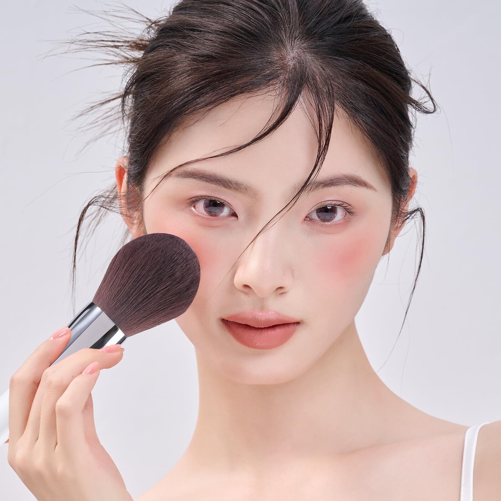 【心地よい使用感】100%タクロンと天然木を採用し、クオリティーを拘って作り上げました。天然毛とは異なり、肌に触る瞬間驚くほどのふんわり感を楽しめ、チクチクし ません。動物アレルギーの方や敏感肌の方も安心です。優れた粉含み力と快適な肌触りで、メイクの仕上がりも一段と格上げしてくれます。