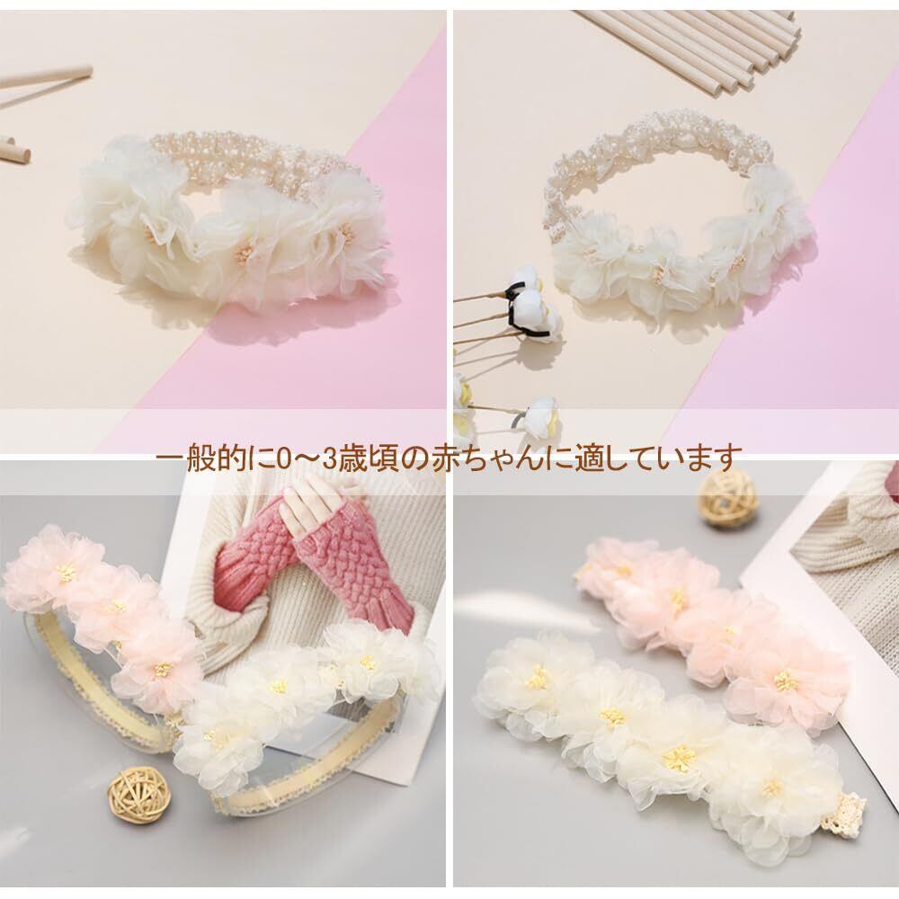 ヘアバンド ベビー ゴ ヘアアクセサリー 髪飾り レースバンド ヘッドドレス 女の子 新生児 出産祝い 誕生日 記念撮影 お祝い 結婚式 3点セット (スタイル3)