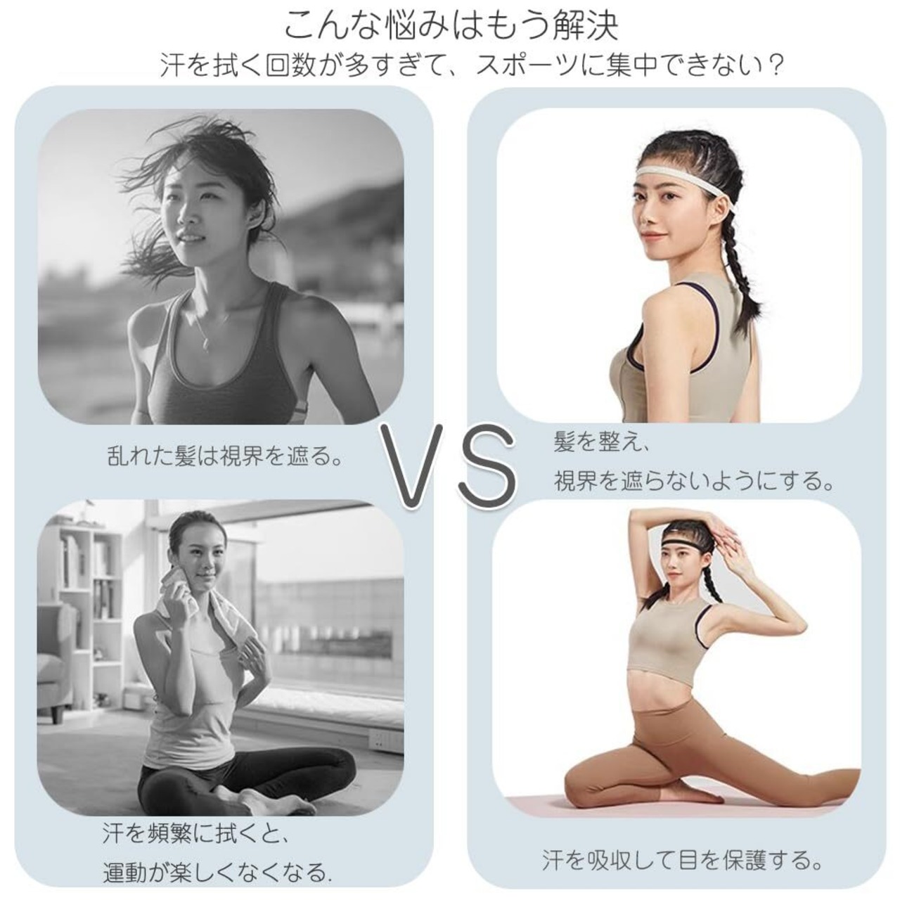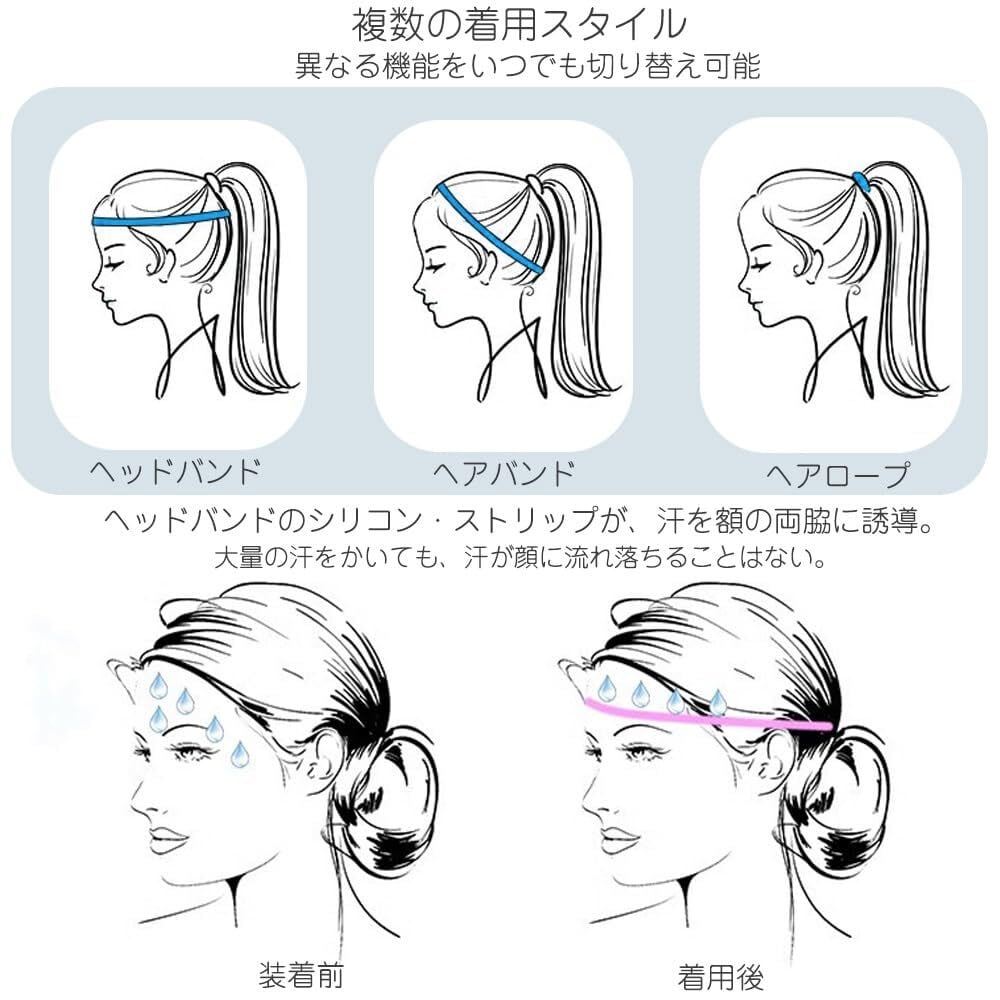 気軽に運動を楽しむ:スポーツやトレーニング、サッカー、バスケットボール、ジム、ホッケー、テニス、ヨガ、ゴルフ、ランニング、髪を結ぶなど、あらゆるレジャーに最適。男女兼用ヘアバンド スポーツ。 複数個同時に重ね付けも可能。