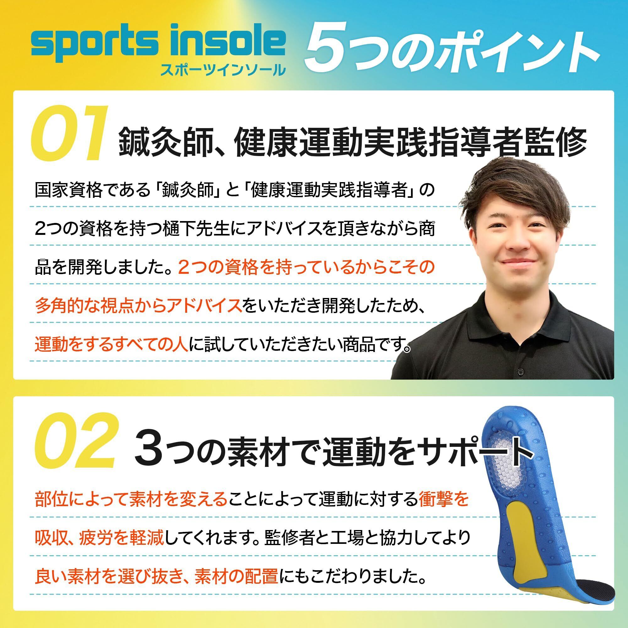 【トレーナー・鍼灸師監修/スポーツインソール】国家資格である鍼灸師で、アスレティックトレーナーでもある樋下先生監修。「Satiproスポーツインソール使うことで、足への衝撃を吸収します。スポーツをされている方や、立ち仕事の方にぜひお使いいただきたいです」