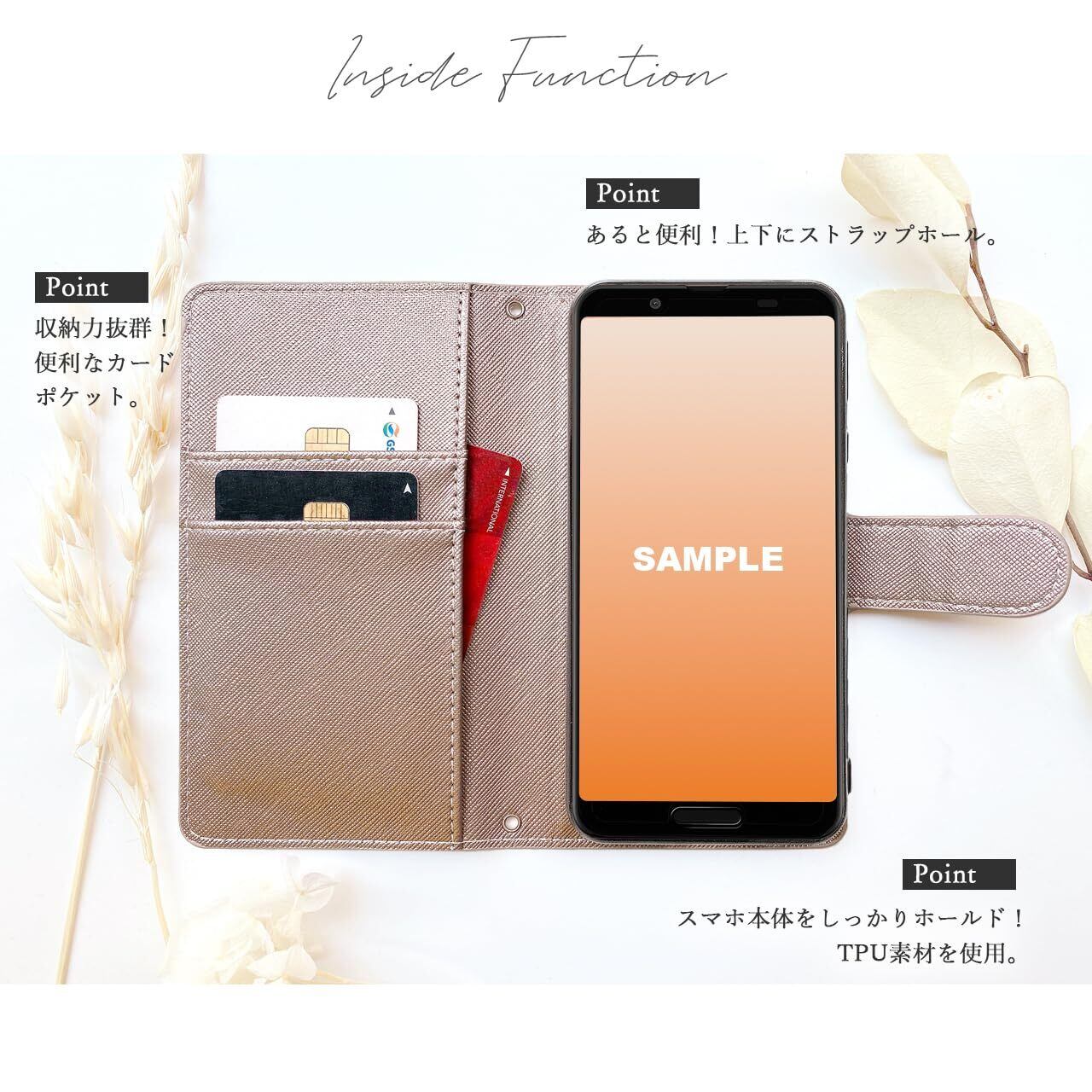 ◎手帳部分と内側ケース部分は接着しておりますが、強くめくったりひっぱると剥がれる場合がございます。内側のケースは黒TPUを使用し、本体をカバーします。電源ボタンや音量ボタンなどは、黒TPUケースの上から押す仕様となっております。カメラ部分などは機種に合わせた開口部が開いております。