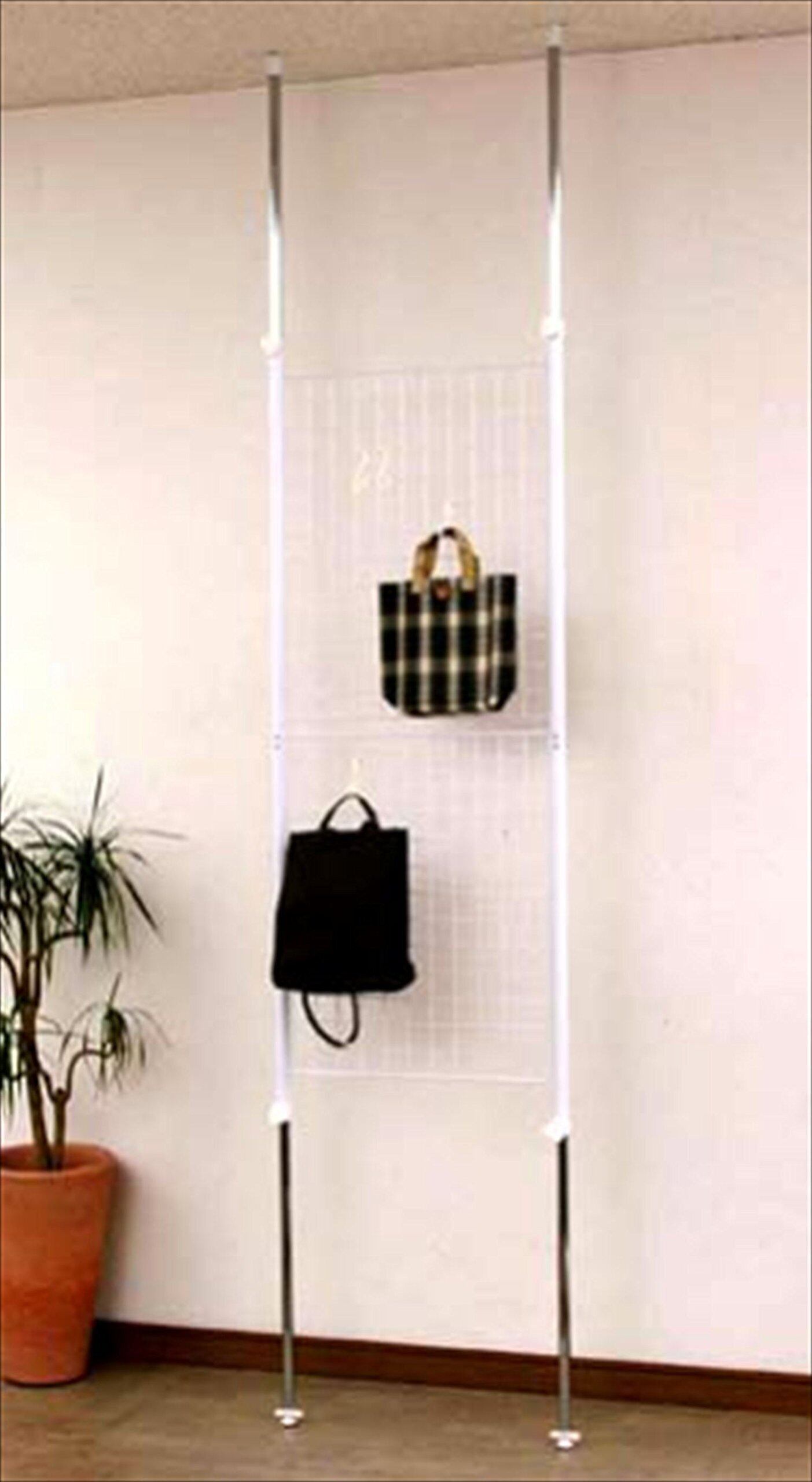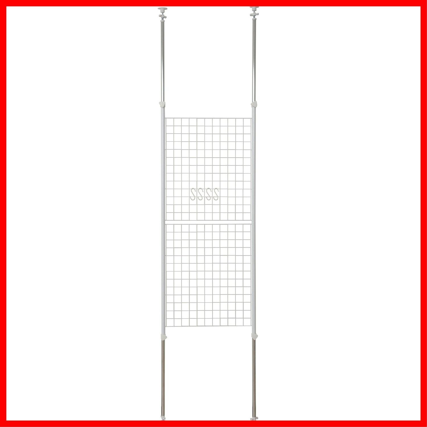 山善(YAMAZEN) 突っ張り パーテーション (ワイヤータイプ) 幅60×奥行5×高さ166.5-295.5cm (フック4個付き) 壁掛け 収納 壁面収納 天井 間仕切り 組立品 ホワイト SP-60(W) | hananoki