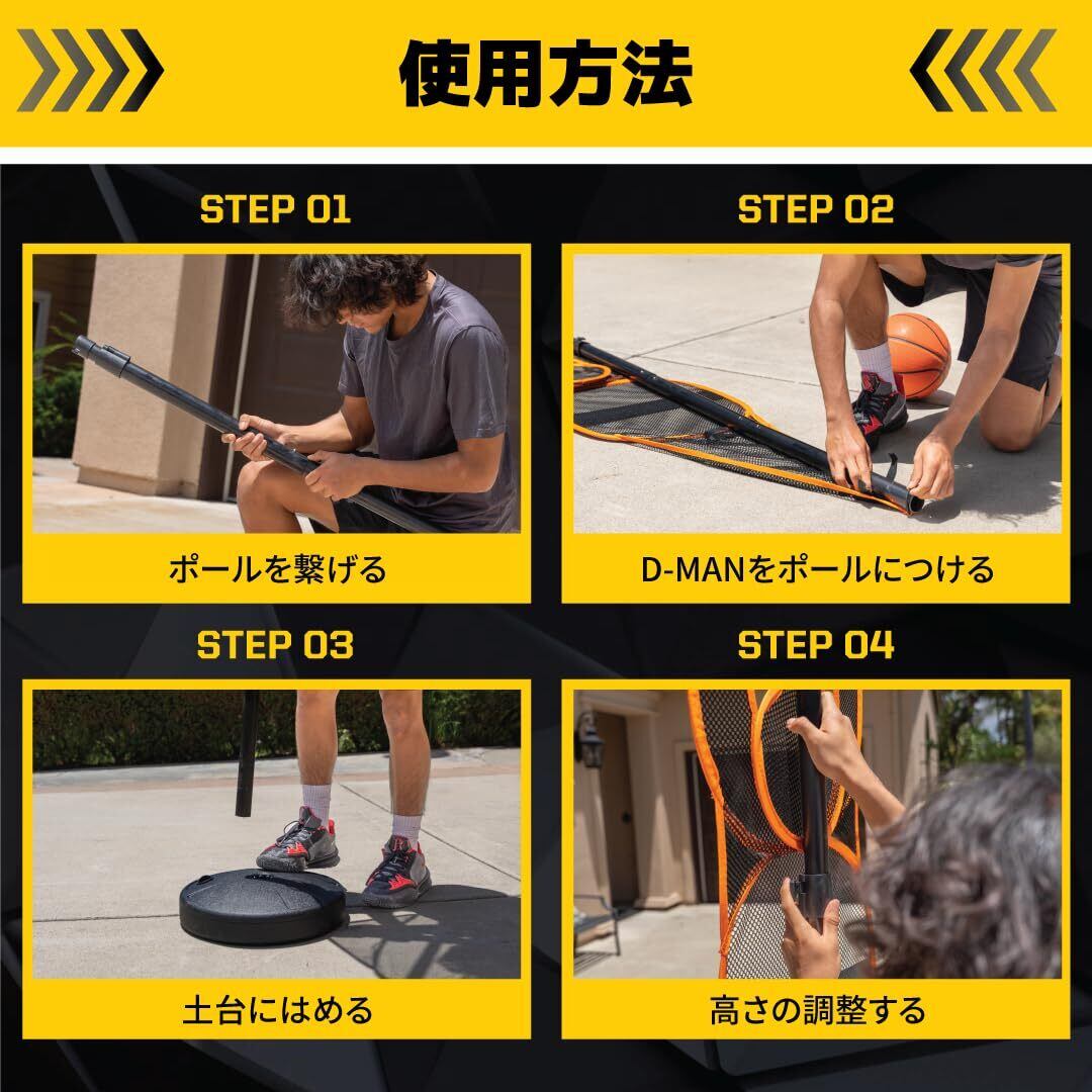 高さ調節可能: 6.5〜8フィート(約200〜244cm)の伸縮ポールで調整可能なD-Manディフェンダーで、シュートやパスの精度を高めます。