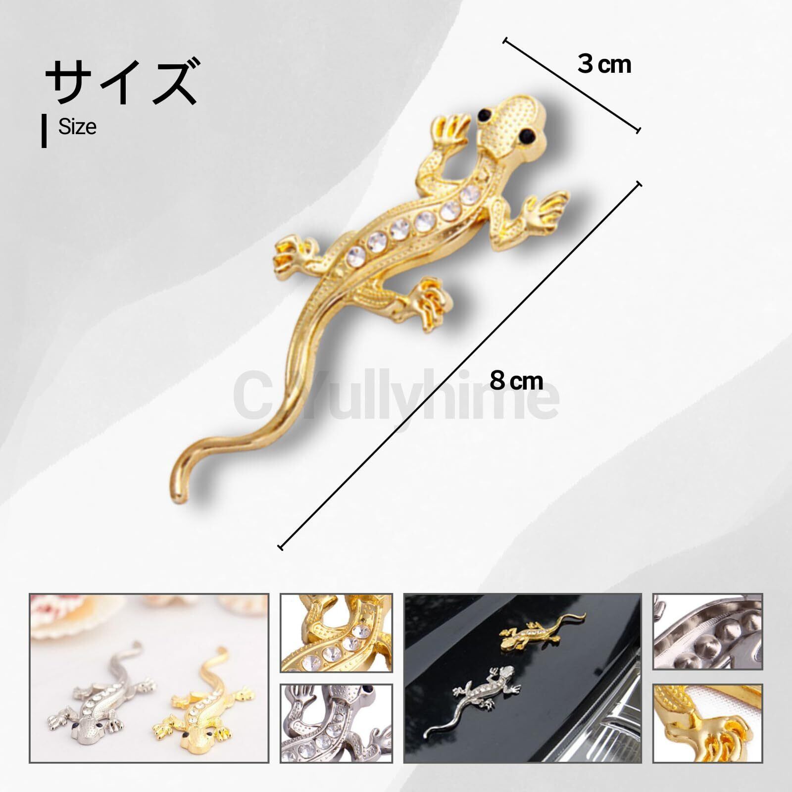 C.Yullyhime ヤモリ 車ステッカーかっこいい 2点セット ヤモリ 3D トカゲ 立体 可愛い目が エンブレム ゲッコー ヤモリ シルバー シール カー用品 貼るだけ 簡単 | hananoki