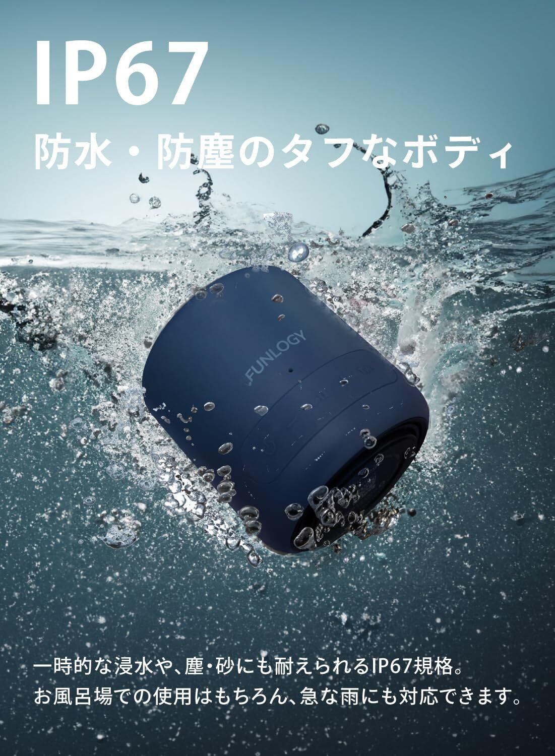 FUNLOGY Portable Mini(スピーカー/ポータブルスピーカー)【VGP2024受賞 / 防水対応/小型/Type-C 充電式/バッテリー 内臓/Bluetooth対応/ワイヤレス / IP67 お風呂 で使える/pc スマホ 接続OK/TWS 対応/日本ブランド/ブルー】