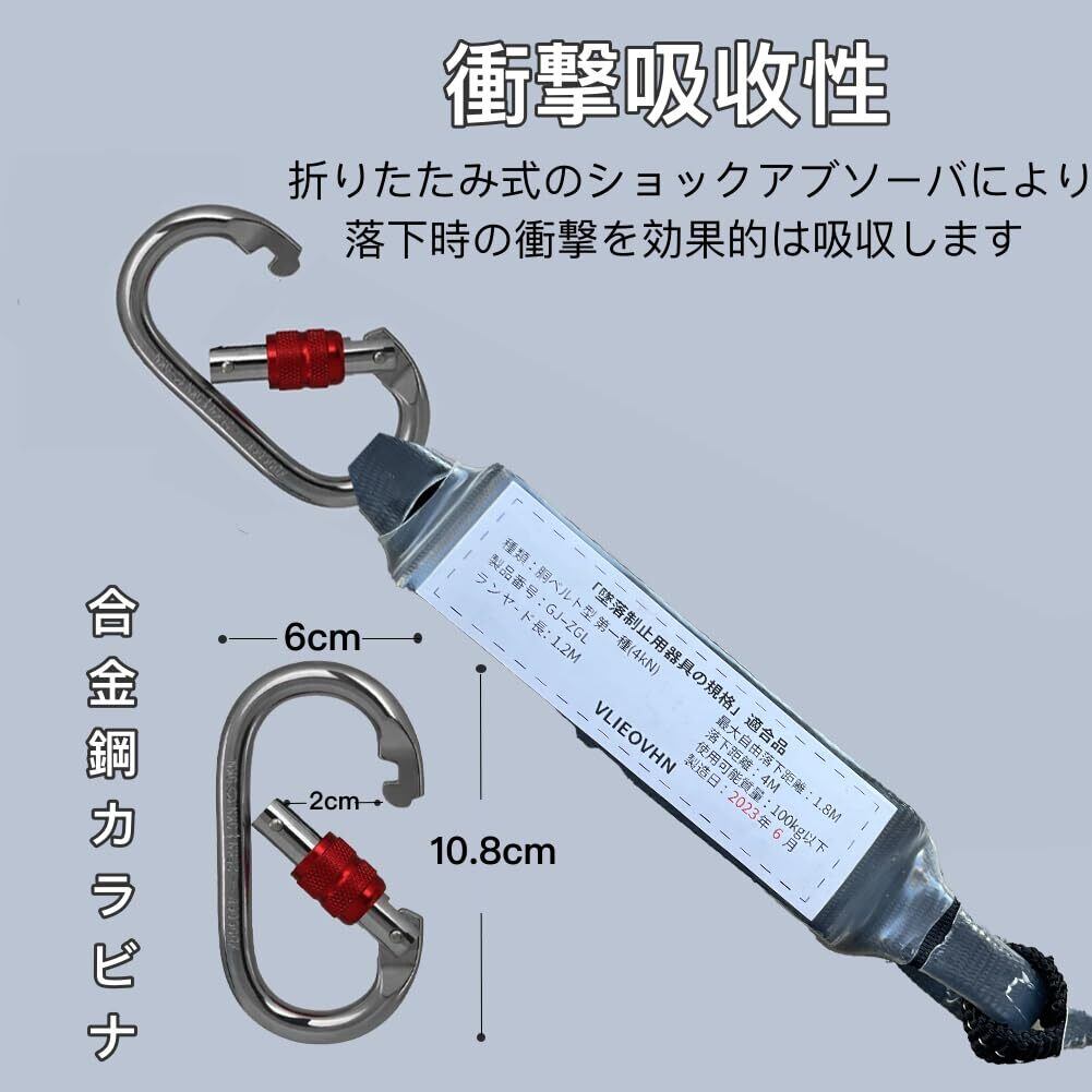 [VLIEOVHN] ランヤード 新規格 胴ベルト型用ランヤード 墜落制止用器具 安全带ランヤード ハーネス用ランヤード フルハーネス用 ランヤード 一丁掛け 電気工事 建設工事 現場 一般高所作業用