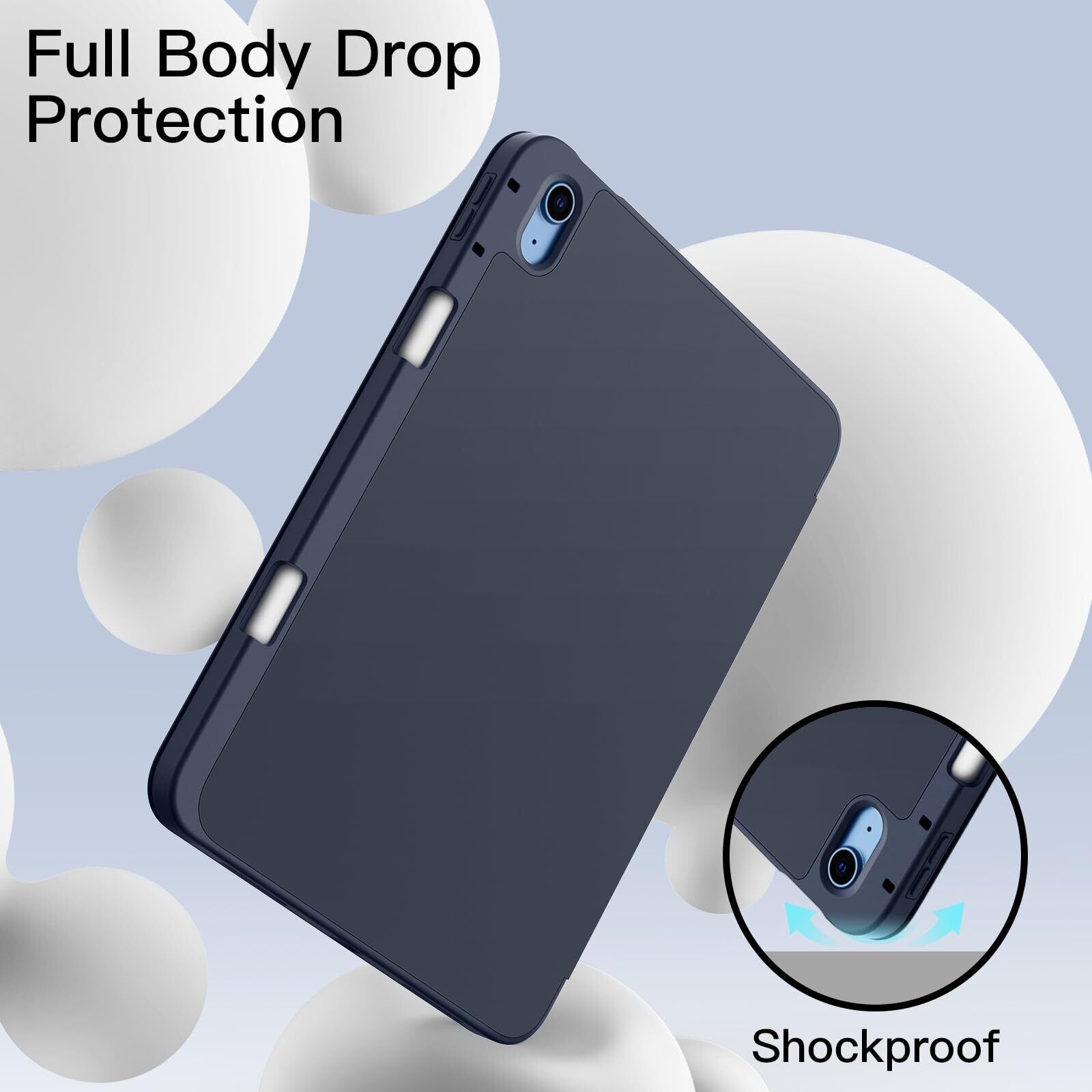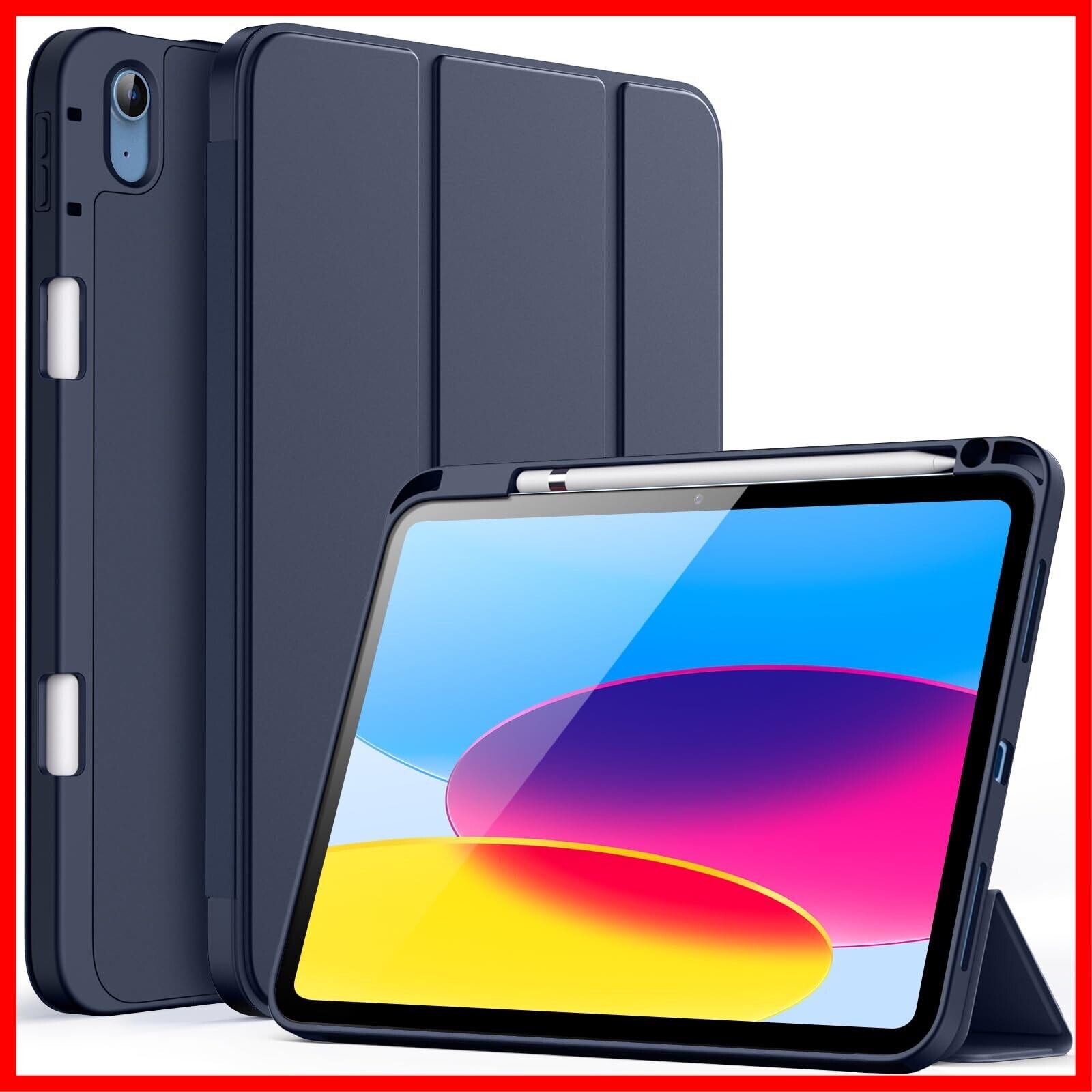 JEDirect iPad(A16)ケース 第11/10世代(2025/2022モデル)用Pencilホルダー付き 対応 ソフトTPUバック スリム保護カバー オートウェイクアップ/スリープ機能付き (ディープネイビー)