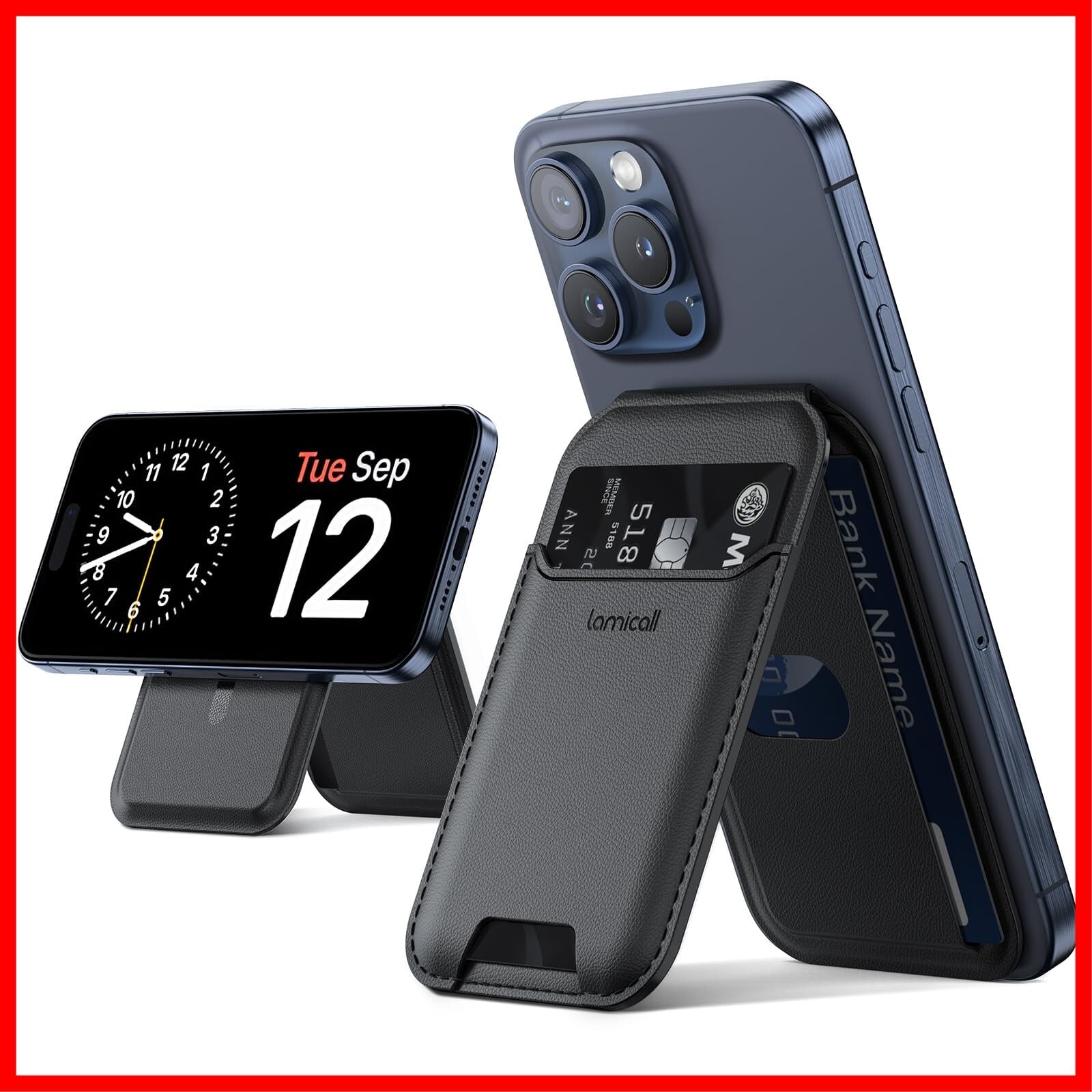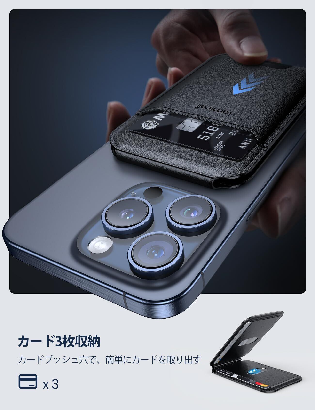 【2024新登場・重さ改良】 Lamicall MagSafe対応 カード ケース スマホ スタンド : 3枚収納 magsafe 財布 マグセーフ ウォレット マグネット カード ホルダー カード収納 ヴィーガンレザー カード入れ 取り外し可能 角度調整 スタンド機能 財布 iPhone 16e 16 15 Plus pro pro max/14/13/12 に対応 ブラック | hananoki