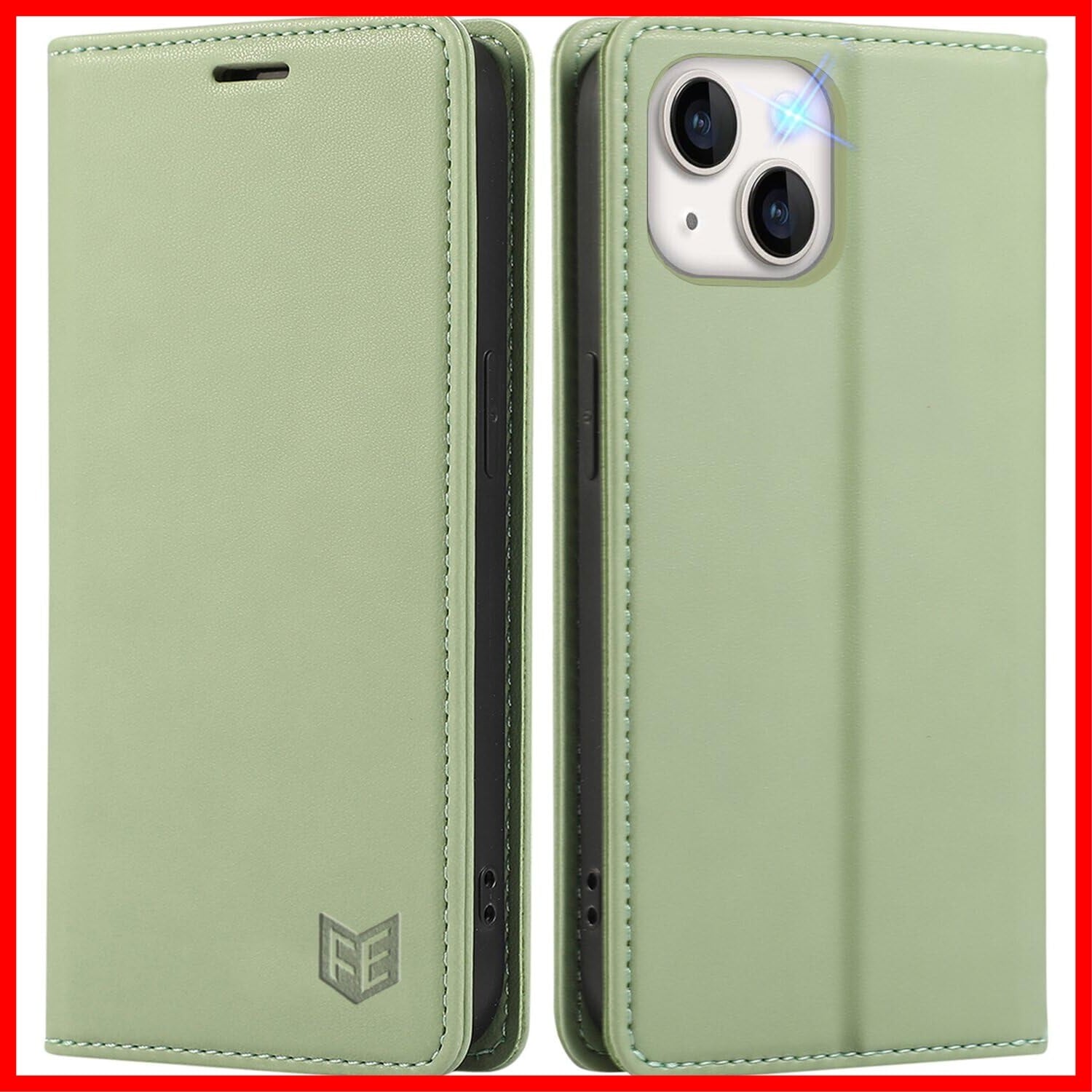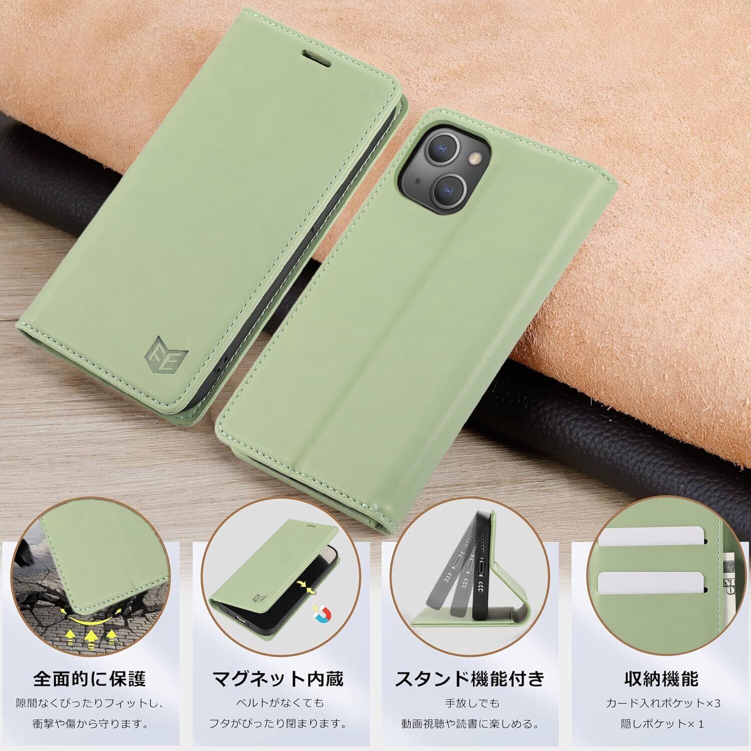 iphone15ケース 手帳型 Iphone15手帳 ケース 耐衝撃TPU素材カード収納 マグネット内蔵スタンド機能付き アイフォン15携帯カバー全面保護 iPhone 15スマホケース 5G 6.1インチ対応, ライトグリーン | hananoki
