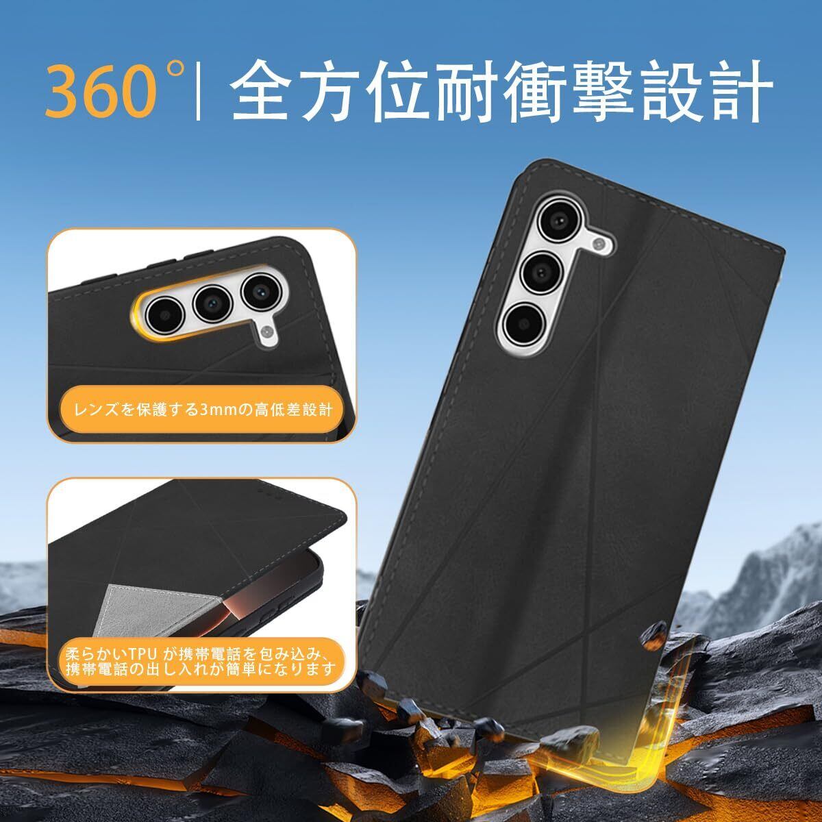 【360°全方位保護】手帳型のシェルが携帯電話の画面を完全に覆い、携帯電話の画面を完全に保護します。背面は携帯電話のカメラより3mm高く設計されており、携帯電話のカメラが衝突するのを防ぎます。携帯電話がどの角度で落ちても、全周レザーと柔らかいTPU内装で携帯電話をしっかり保護します。