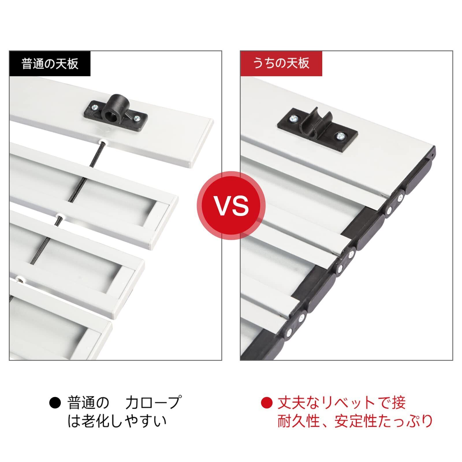 ●【アルミ製天板 + 鉄製フレーム】自体重量:4.2KG / 耐荷重:45KG。 天板には軽量で強度も高いアルミ素材、フレームには高強度の鉄素材を採用します。