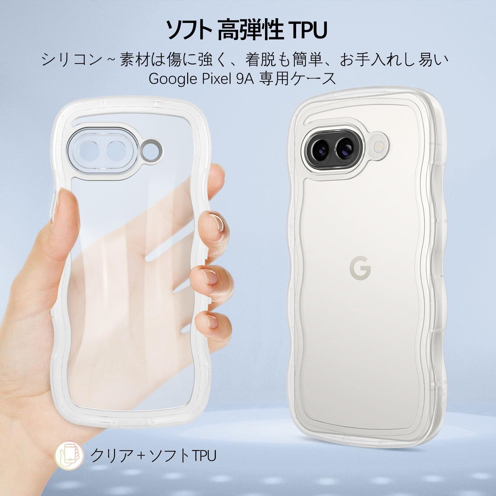 【ウェーブ湾曲縁&TPU肌触り】湾曲したエッジにより握りやすくなっています。Pixel 9A透明ケースは滑らかな液体シリコンゴムと柔らかいTPU製で、耐傷性、耐指紋性、耐衝撃性に優れ、取り外しも簡単,お手入れし易い。