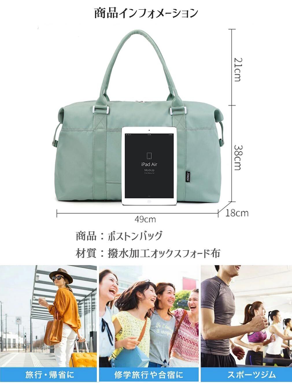 [saliwind] ボストンバッグ 旅行バッグ 大容量 レディース メンズ 修学旅行 キャリーオンバッグ 機内持ち込み 軽量 防水 1泊 2泊 旅行カバン スポーツバッグ 旅行 出張 ブラック (グリーン) | hananoki