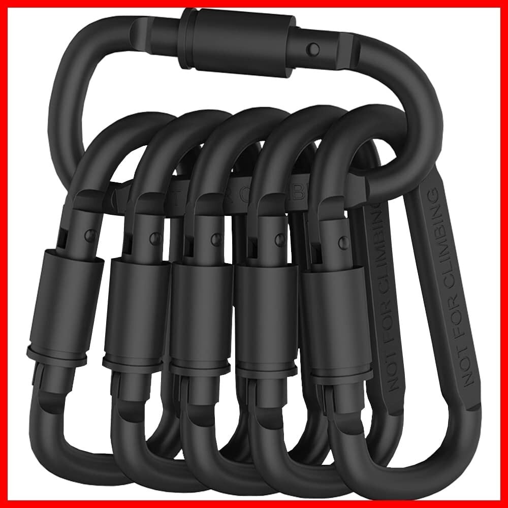 仕様:D字型カラビナ6個セット 素材:アルミニウム合金 カラー:ブラック 表面処理:酸化プロセス 形状:ロック付きD型 。