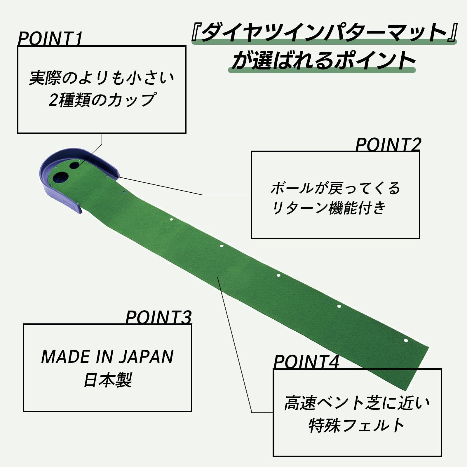 ダイヤゴルフ(DAIYA GOLF) パター練習マット パターマット ゴルフ練習器具 練習用品 トレーニング リターン機能 滑らかな傾斜 フェルトタイプ 日本製 室内練習 屋内 2m 初心者 上級者 今平周吾プロ 若林舞衣子プロ TR-260・TR-433 | hananoki