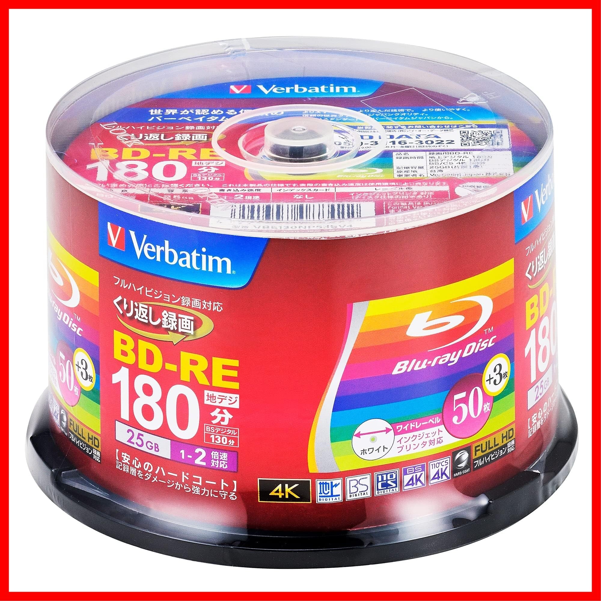 Verbatim バーベイタム くり返し録画用 ブルーレイディスク BD-RE 25GB 【50枚+3枚増量パック】 インクジェットプリンタ対応 ホワイト 片面1層 1-2倍速 VBE130NP53SV4 | hananoki