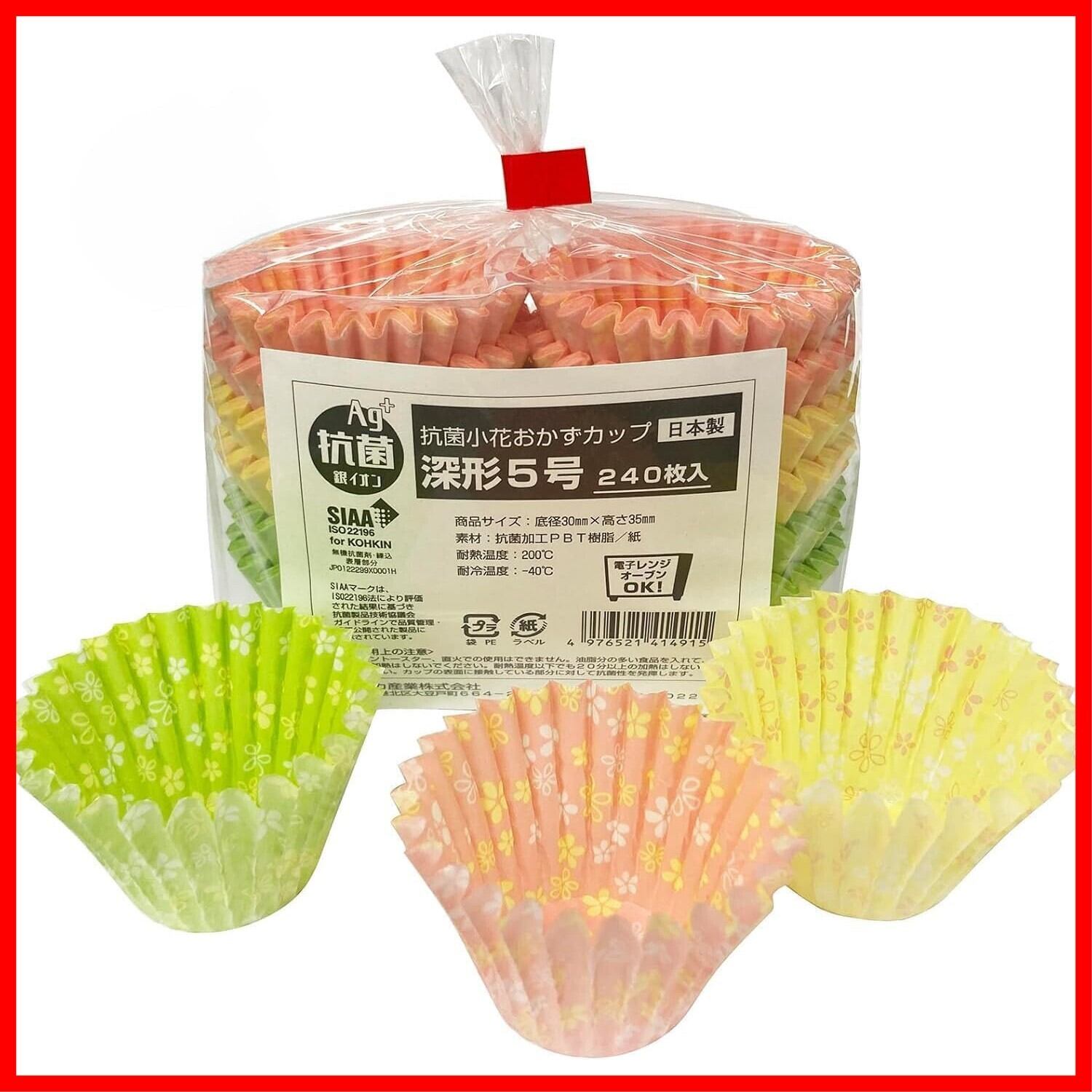 ヒロカ産業 抗菌小花おかずカップ 深形 5号 240枚入 深さ約35mm 電子レンジ・オーブン対応 日本製