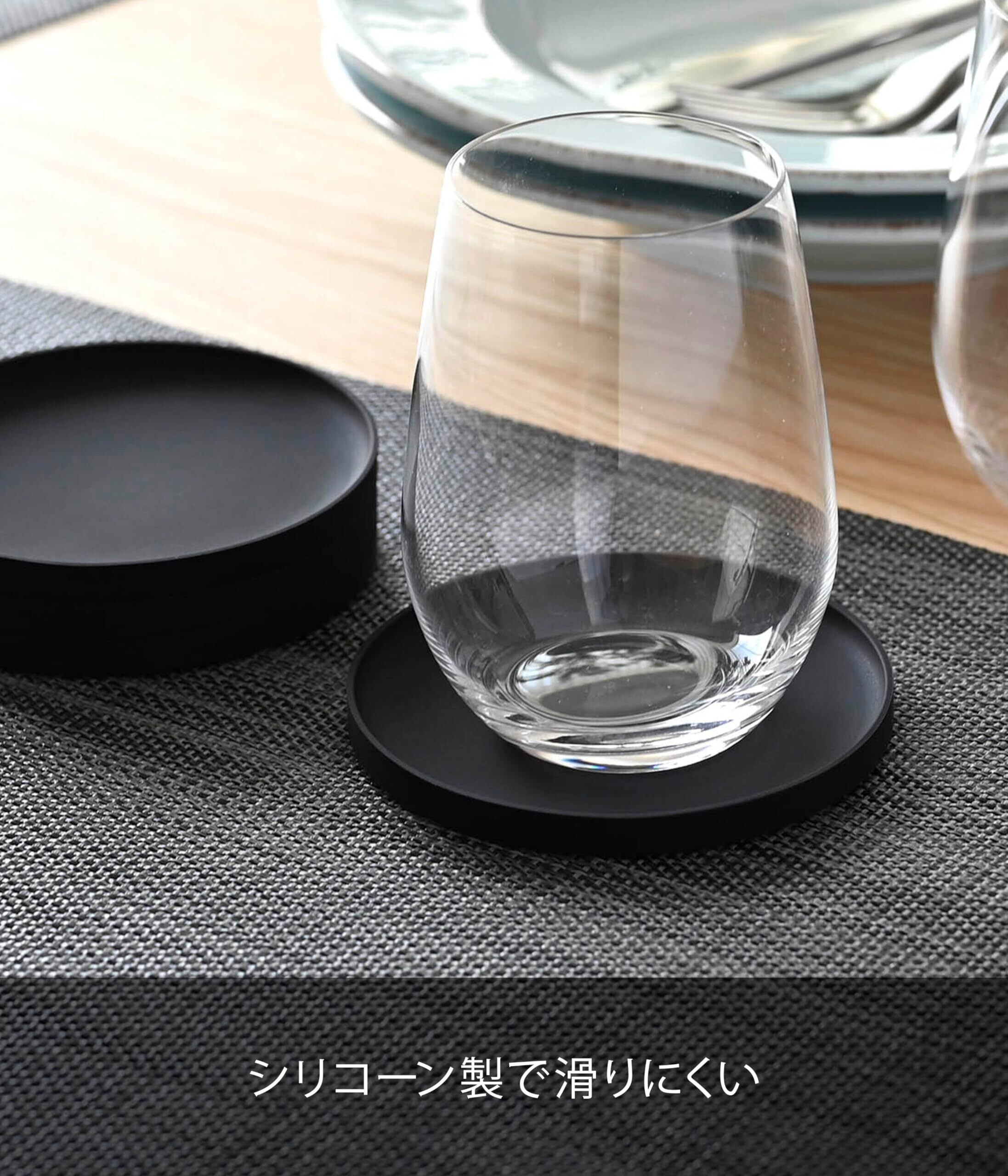 山崎実業(Yamazaki) 立体 コースター 丸型 ブラック 約W10×D10×H0.9cm タワー シリコン 2539