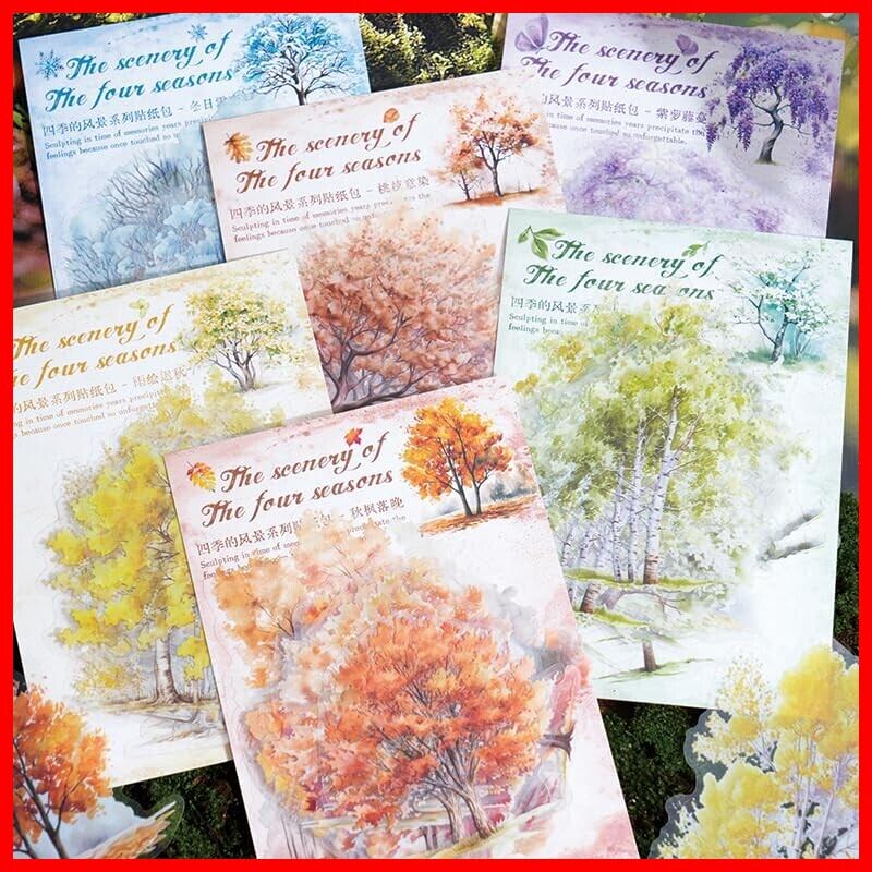 120枚 フレークシール コラージュ 素材 ペーパー 素材紙 レースユートピアステッカーレトロ四季の風景 海外韓国 シール帳 ,メモ用紙ノート素材、日記装飾用品 (sijidefengjing) | hananoki
