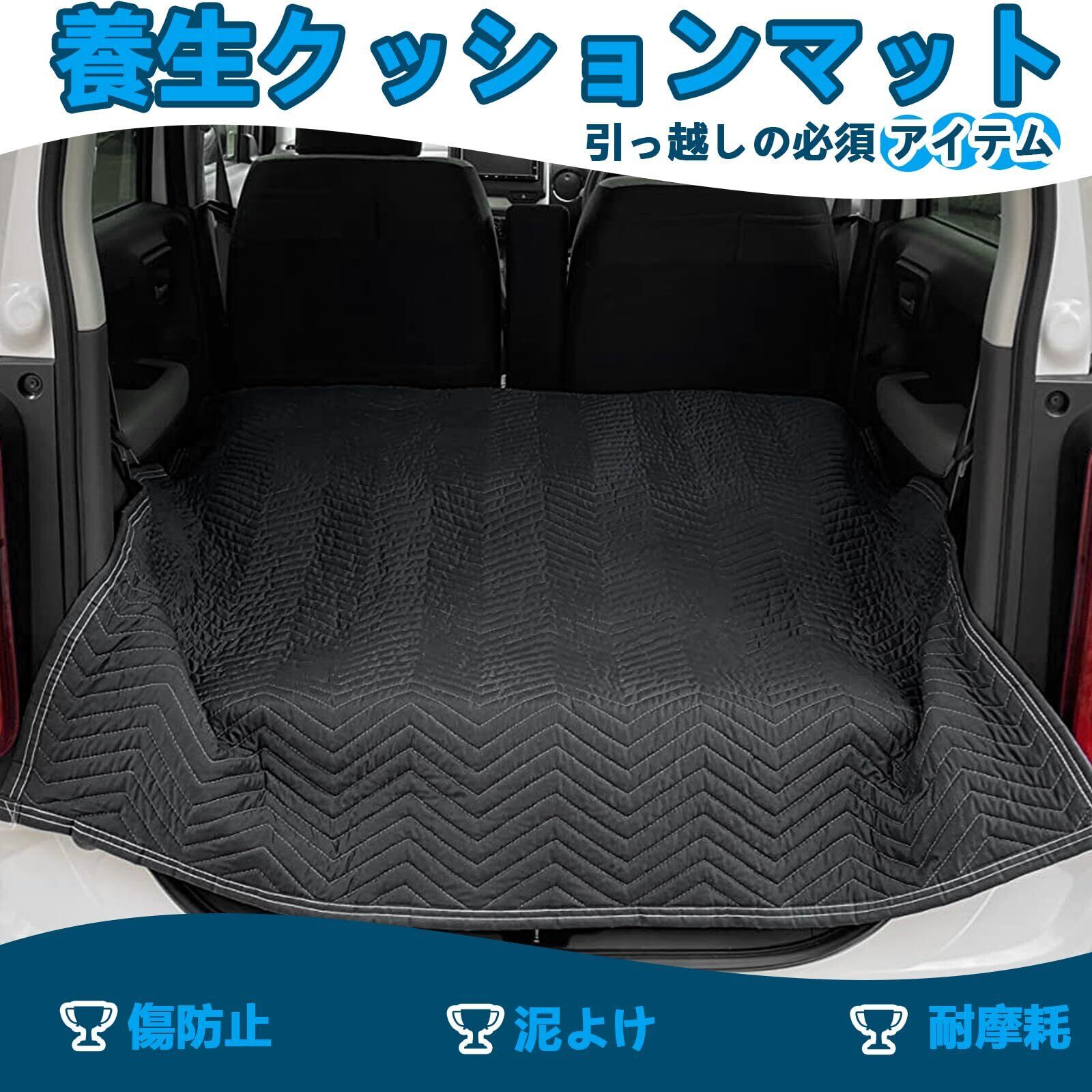 【運搬時の荷物保護】引っ越しのプロのために開発した養生クッションマットです。マット1枚あると、梱包や車への出し入れの際に非常に便利です。引っ越し荷物を車で運ぶ時に、車内の傷防止と泥よけ、引っ越し先での荷物運びの養生から大きな役割を果たします。