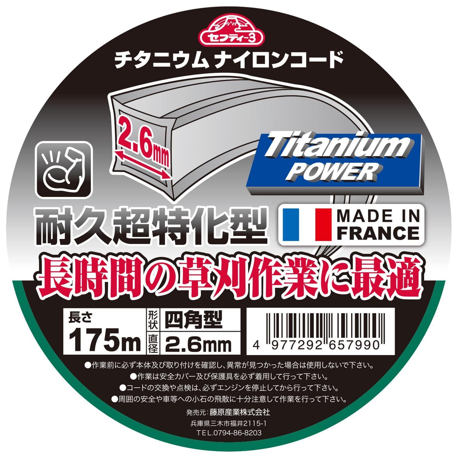 セフティー3(Safety-3) 草刈・刈払機用 耐久性約5倍 チタニウムナイロンコード 175m 四角型 2.6mm径