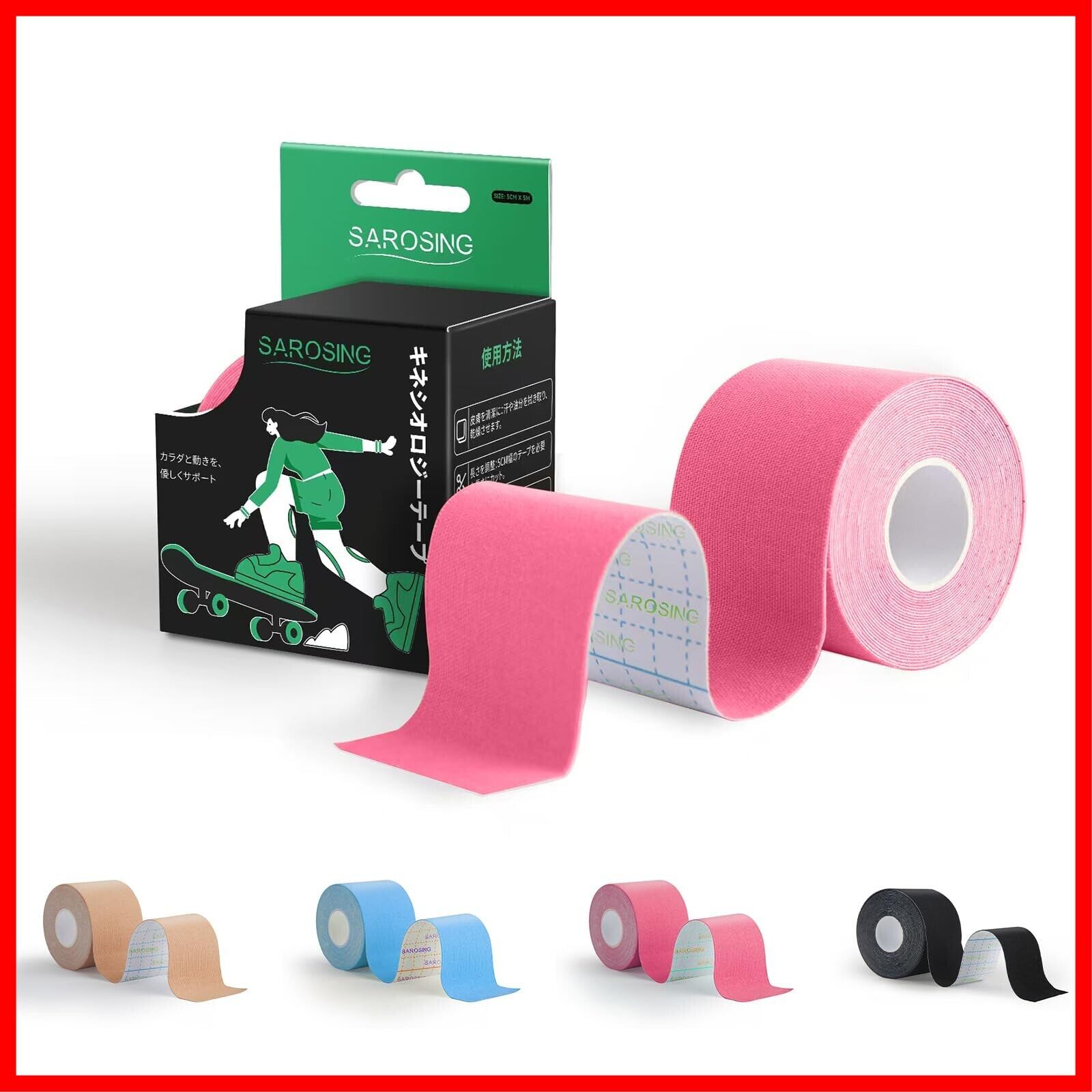 キネシオロジーテープ 伸縮タイプ 50mm×5m|防水加工・低刺激粘着剤|スポーツ用テーピングテープ 膝・腰・手首サポート|通気性メッシュ構造で長時間快適