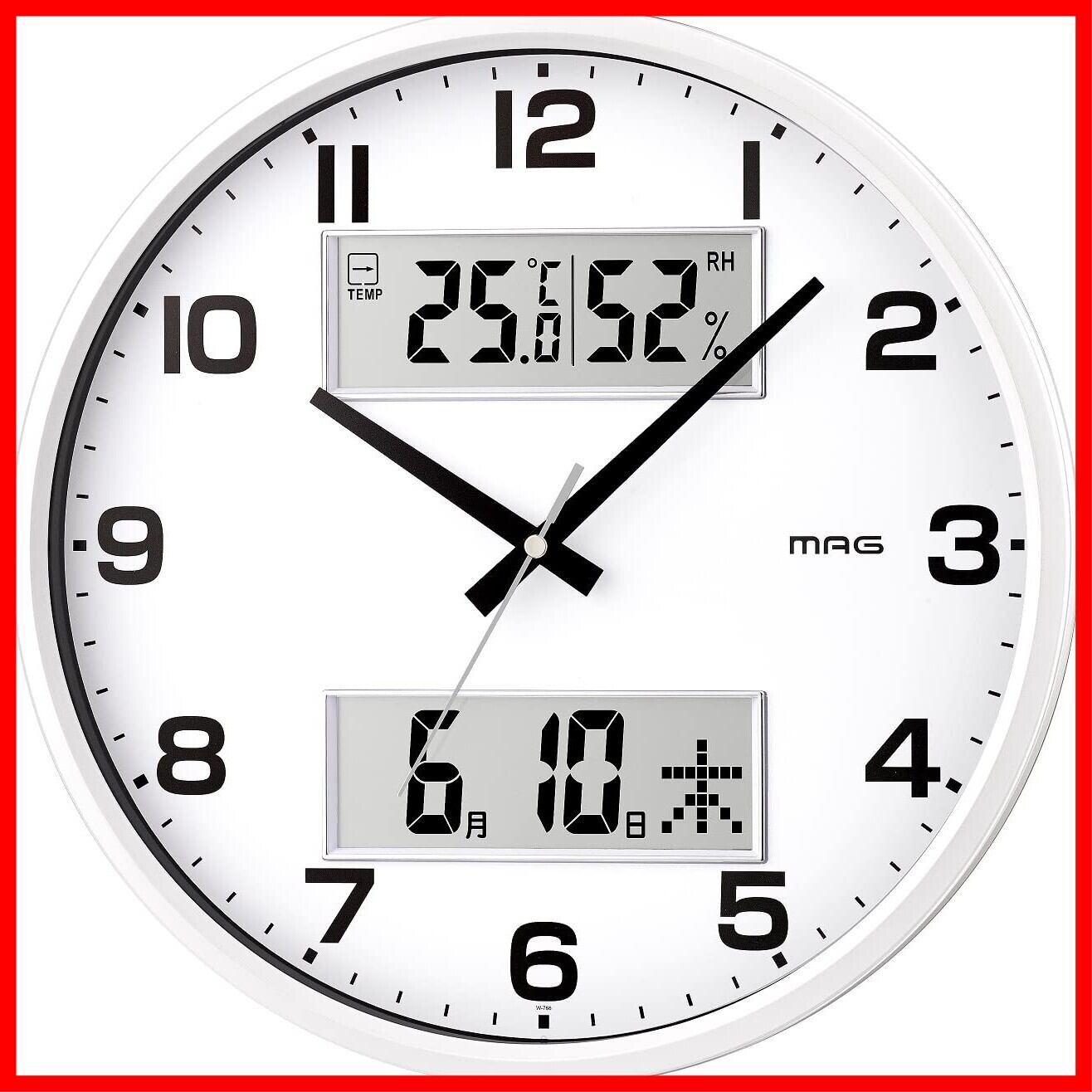 MAG(マグ) 掛け時計 アナログ ダブルポスト 静音 連続秒針 温度 湿度 日付 曜日表示 ホワイト W-766WH-Z 直径32cm