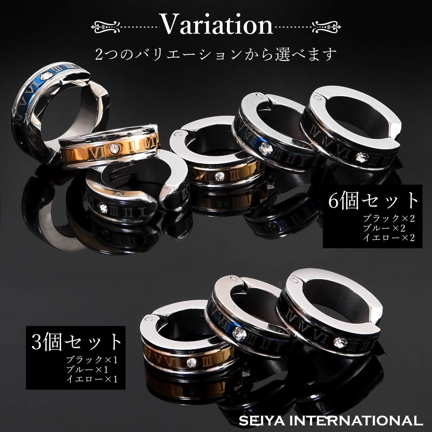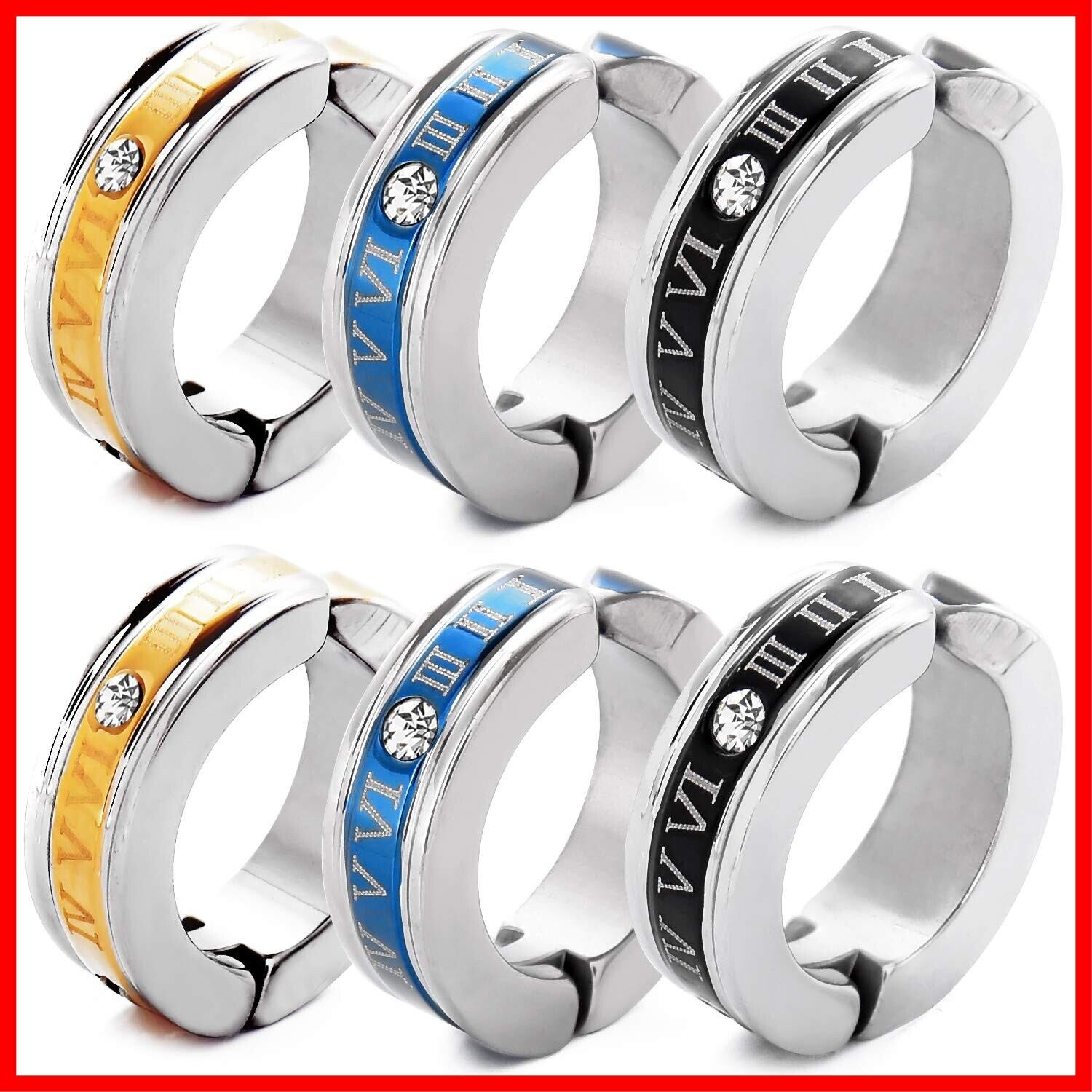 [SEIYA INTERNATIONAL] フェイクピアス メンズ イヤリング イヤーカフ イヤカフ ピアス風 アクセサリー ノンホールピアス レディース ローマ数字 ステンレス シンプル フープ 3色セット (両耳6個セット) | hananoki