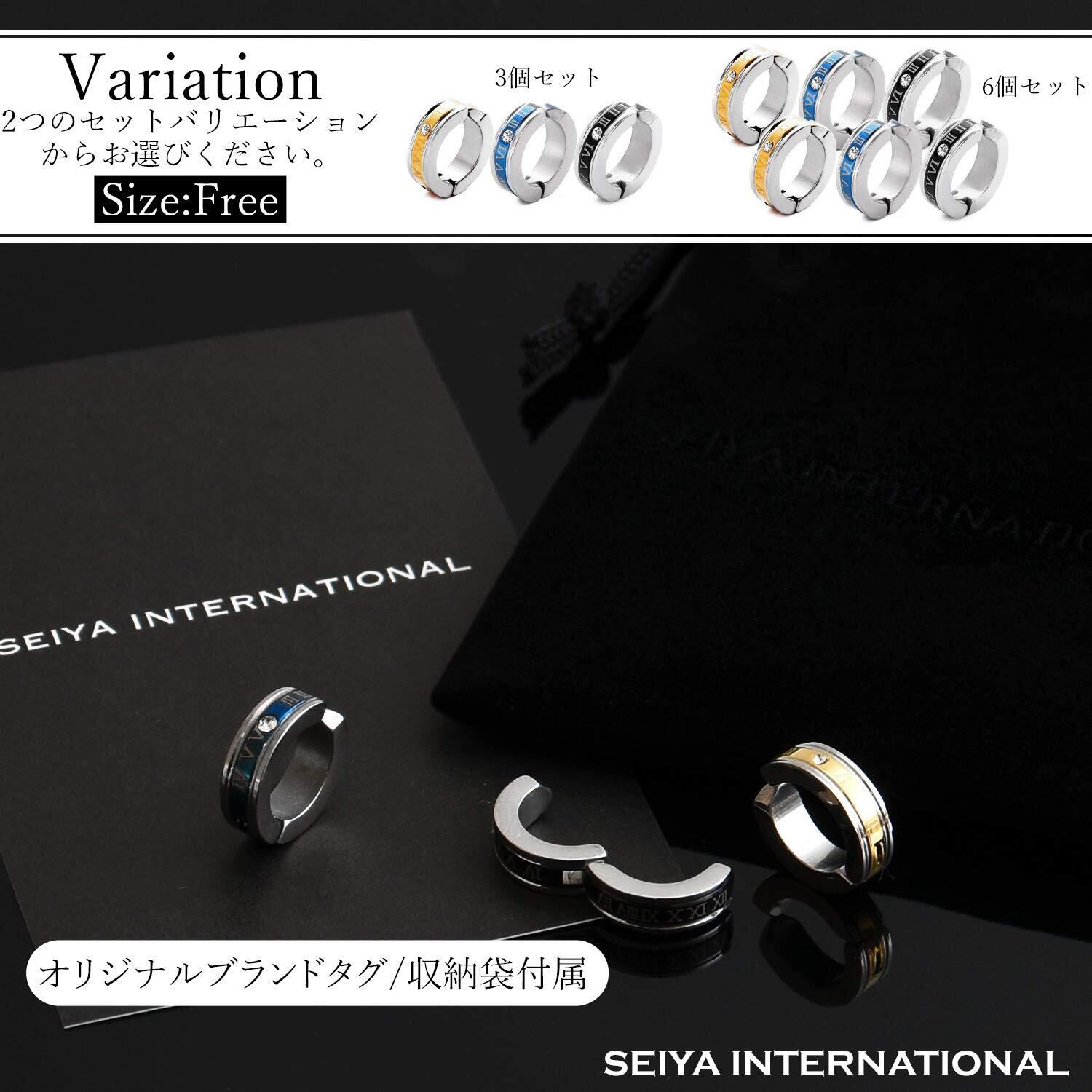 [SEIYA INTERNATIONAL] フェイクピアス メンズ イヤリング イヤーカフ イヤカフ ピアス風 アクセサリー ノンホールピアス レディース ローマ数字 ステンレス シンプル フープ 3色セット (両耳6個セット)