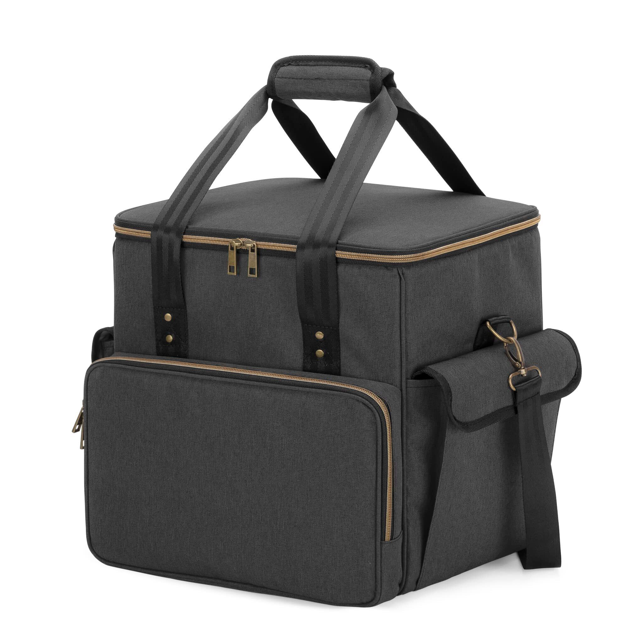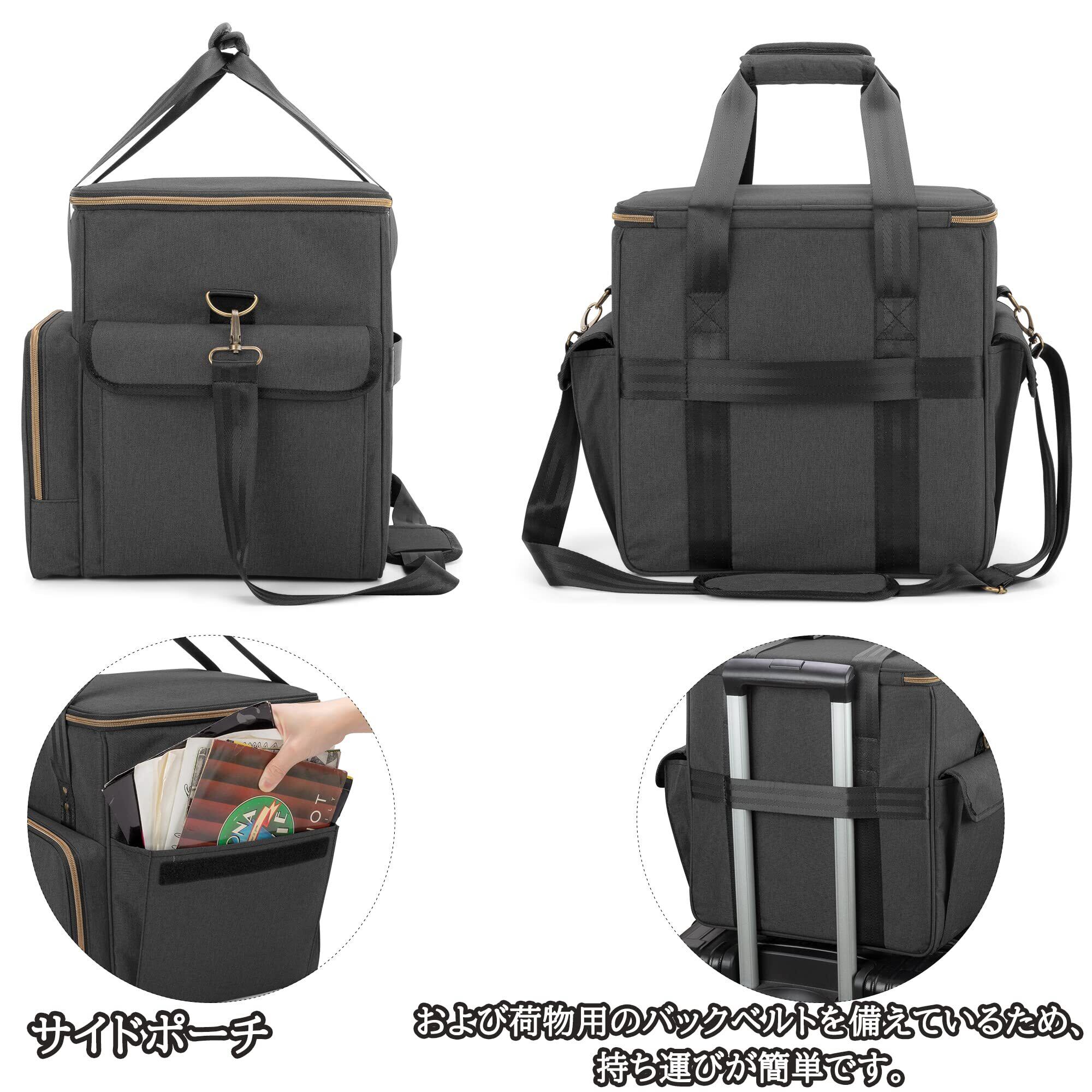 【大容量のレコードバッグ】サイズ:33*26.7*34.3cm。レコードケースは7/ 10/12インチの約60枚のレコードを収納できます。フロントポケットと2つのサイドポーチがあり、7インチのレコードを数枚収納できます。あるいはアクセサリーとクリーニング用品を収納できます。