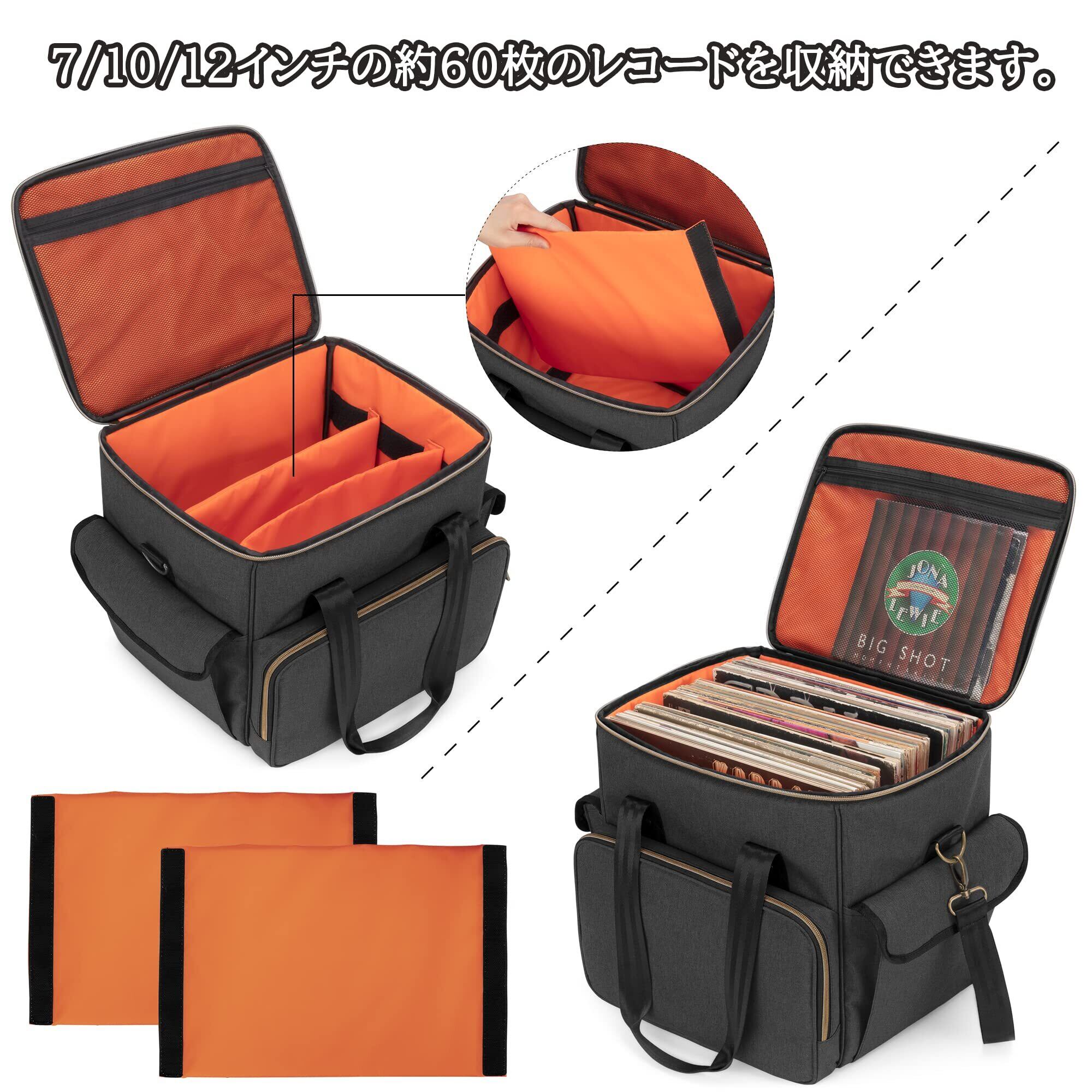 Trunab レコードケース lp用 レコード 収納 最大60枚 レコードバッグ 仕切り板付き 持ち運び