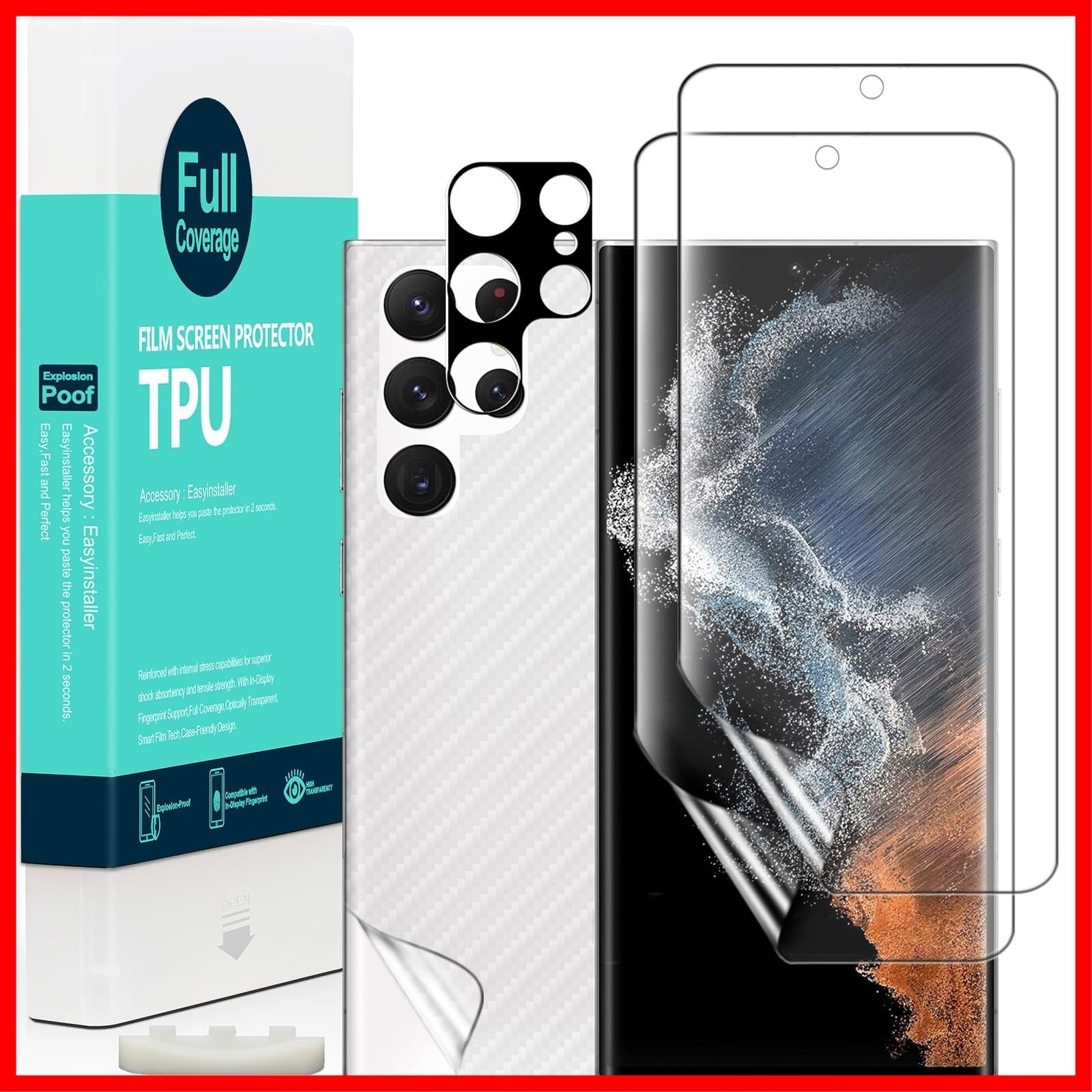 SamSung Galaxy S22 Ultra 5G 6.8" 専用保護フィルム2枚入り カメラレンズプロテクター付き 背面保護フィルム付き 指紋認証対応 気泡な