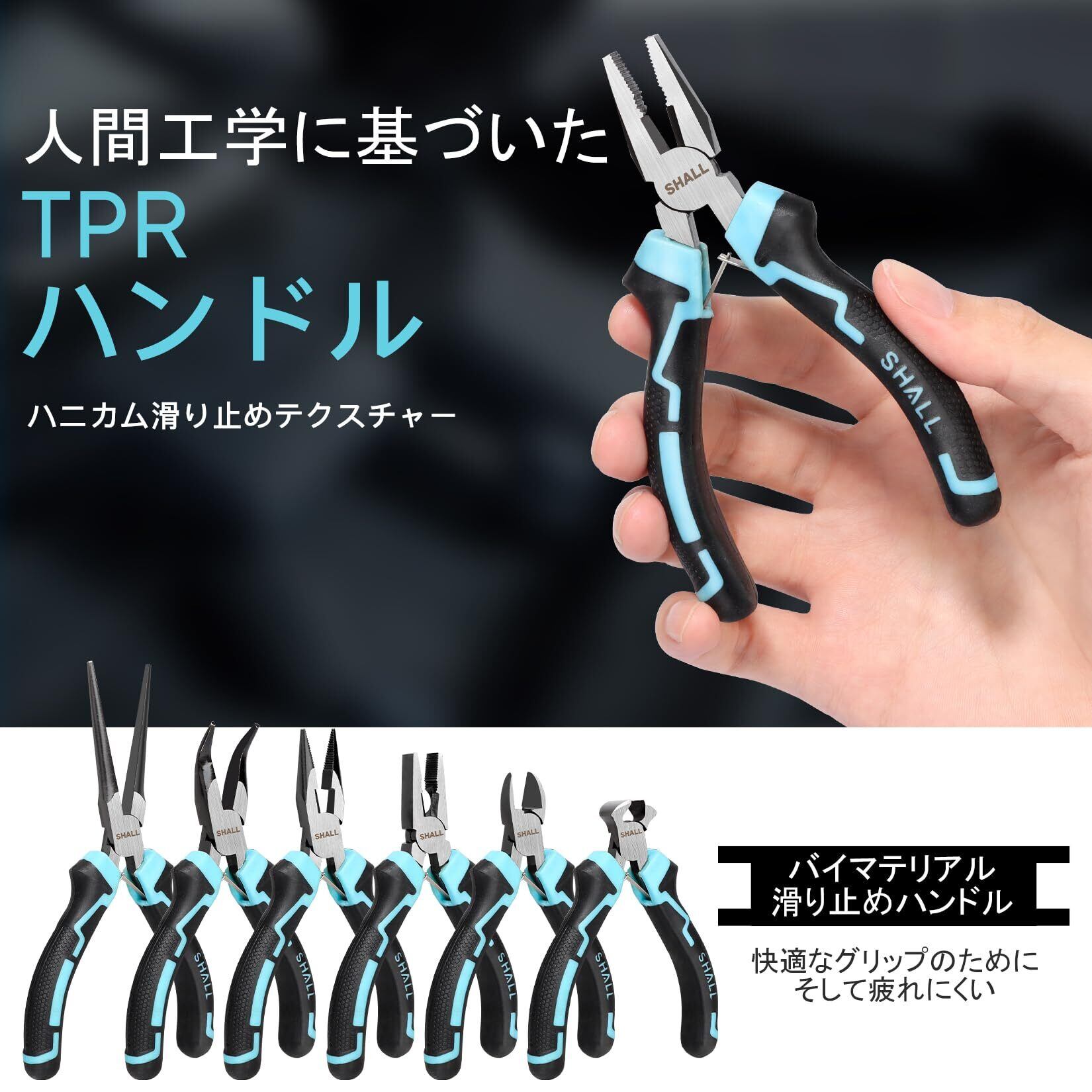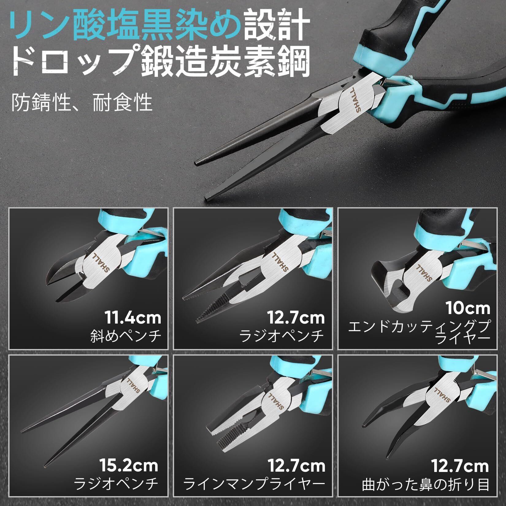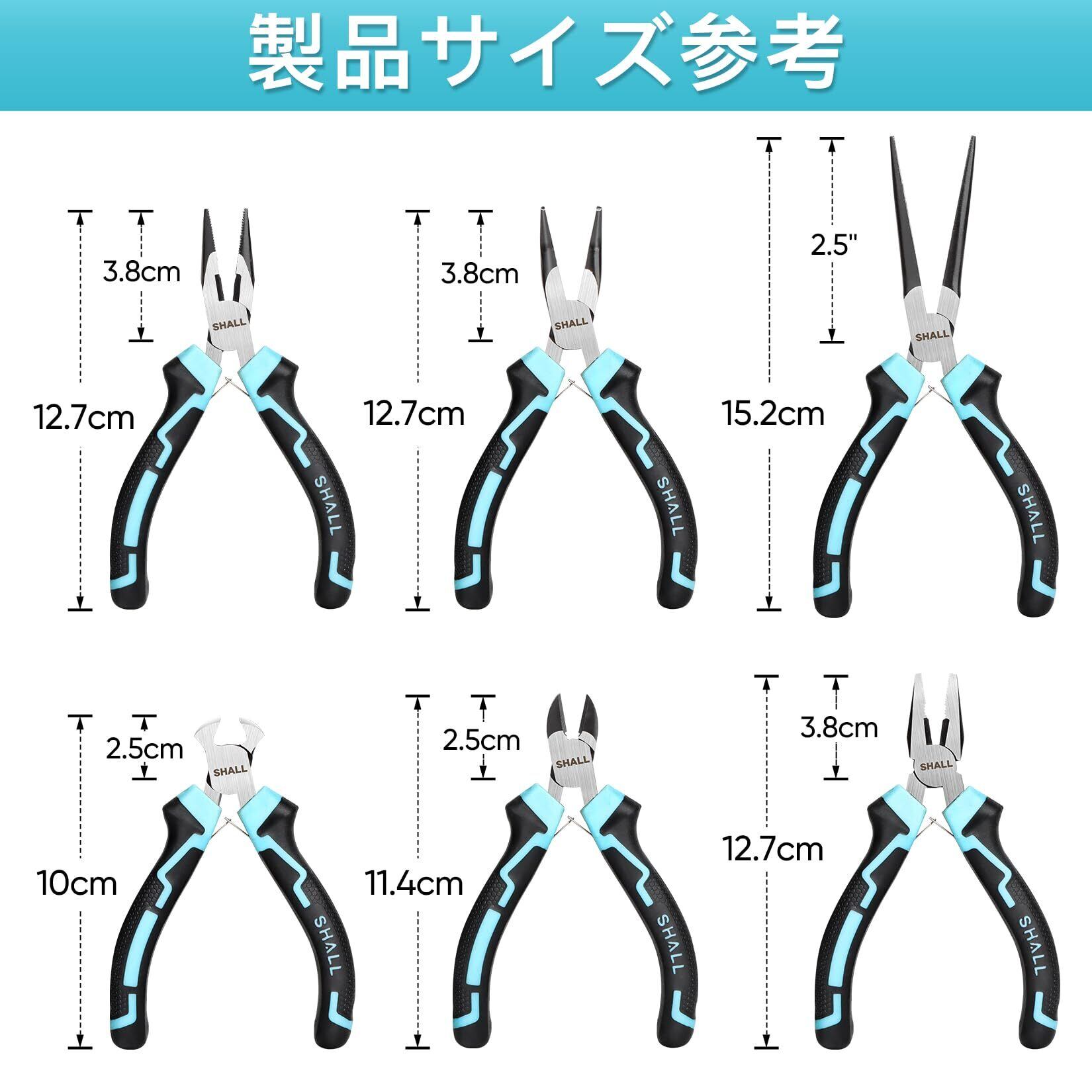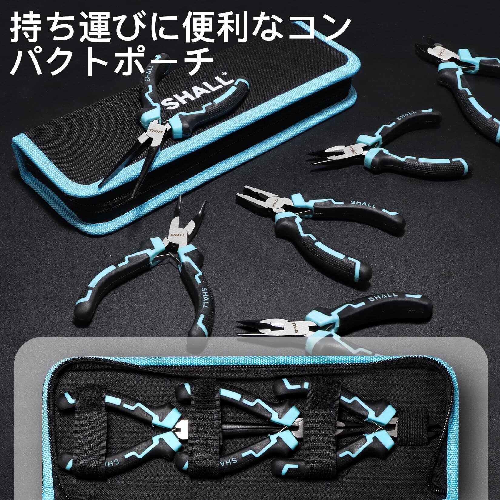 SHALL アクセサリー用工具ミニプライヤーセット 7点ツールセット ニードルノーズ、ロングノーズ、ベントノーズ、ダイアゴナル、エンドカッティング、クラフト、ハンドメイド DIY 道具、電子機器の修理、収納ケース付き