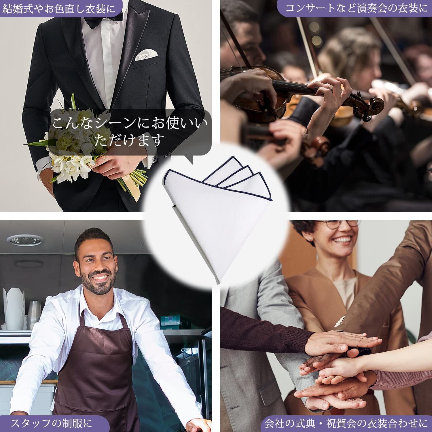 [Beirou] ポケットチーフ リネン 麻 100% 縁取り ホワイト 無地 ハンカチ メンズ 紳士 おしゃれ プレゼント 結婚式 フォーマル ビジネス カジュアル 型崩れ 防止 【ホルダーと折り方ガイド 付き】