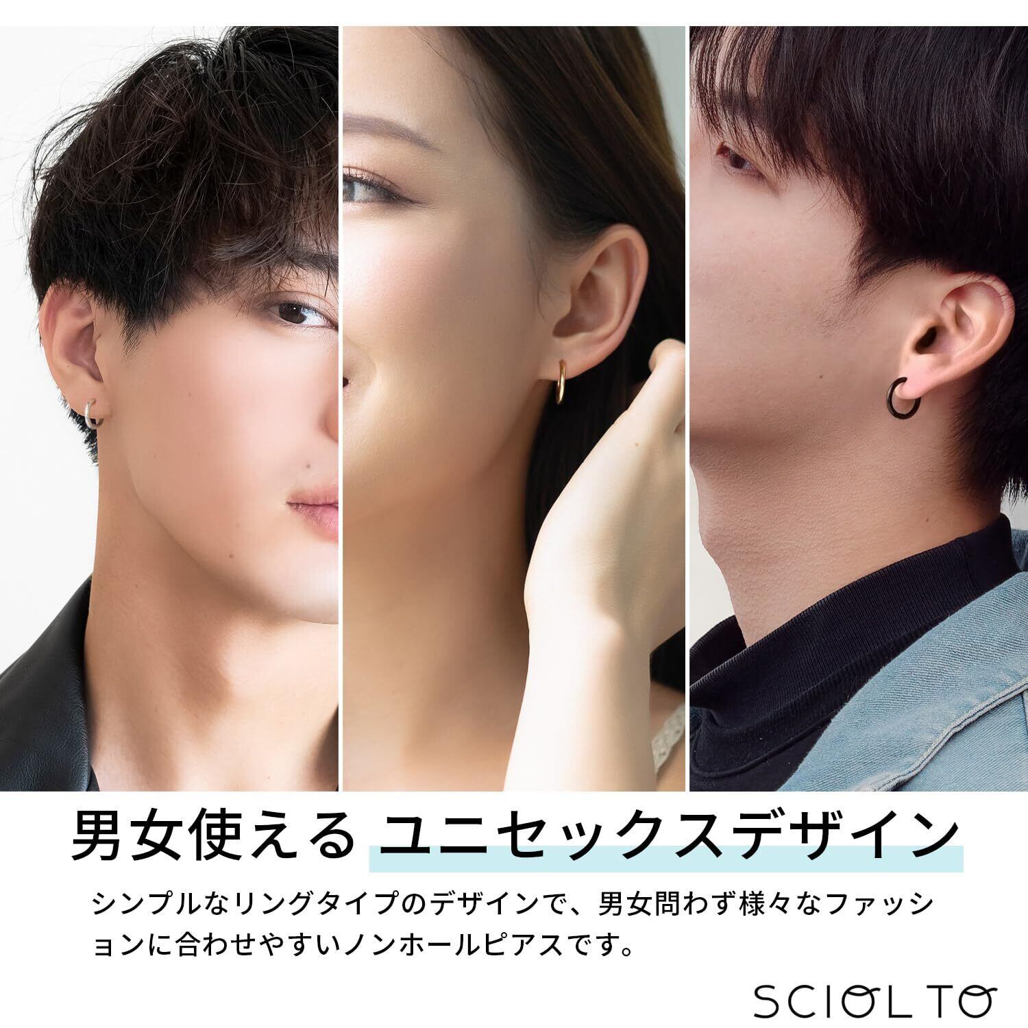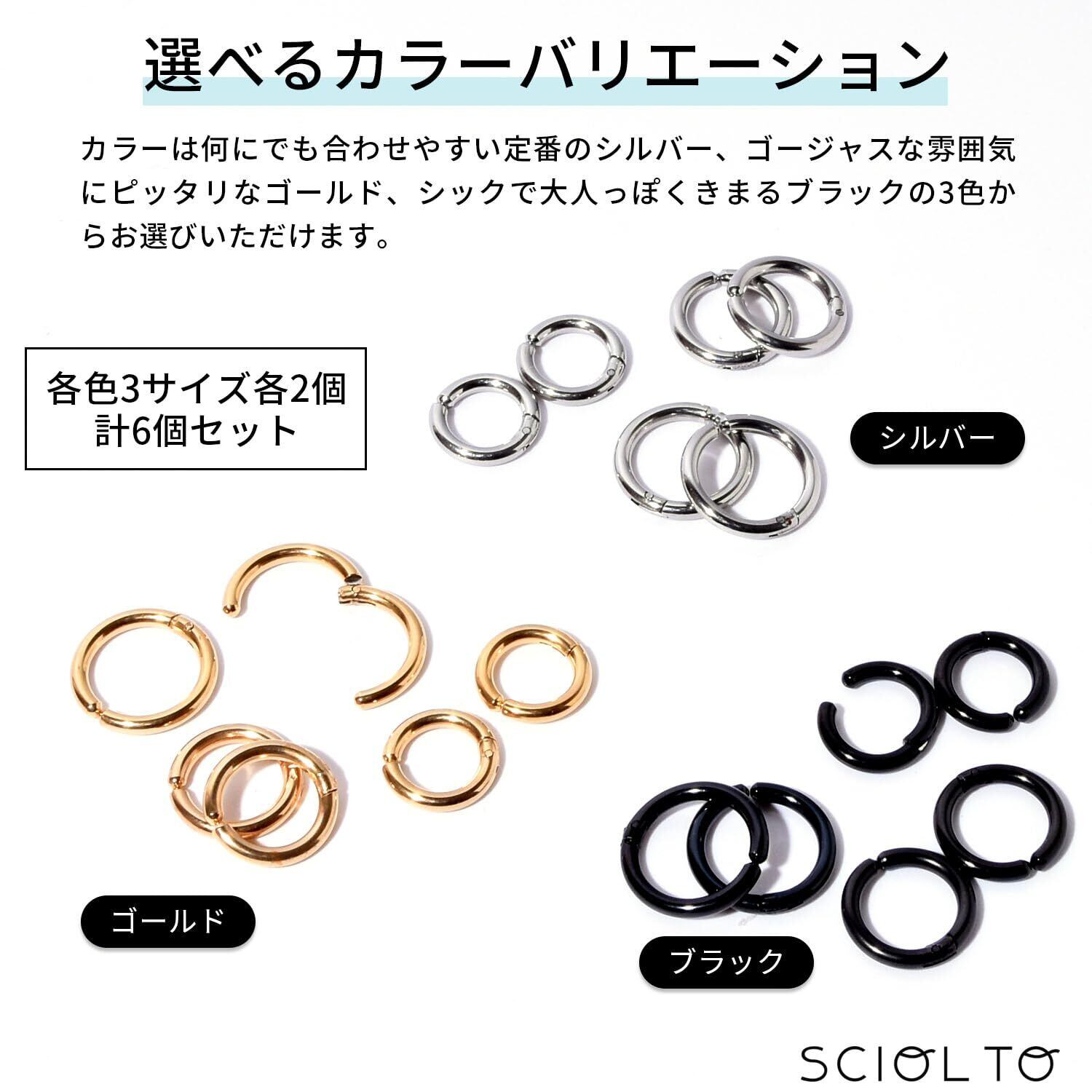 [SCIOLTO(ショルト)] ピアス穴不要 ノンホールピアス フェイクピアス イヤリング [3サイズ 6個セット] ピアス風 リングピアス 穴開けないピアス イヤーカフ メンズ レディース