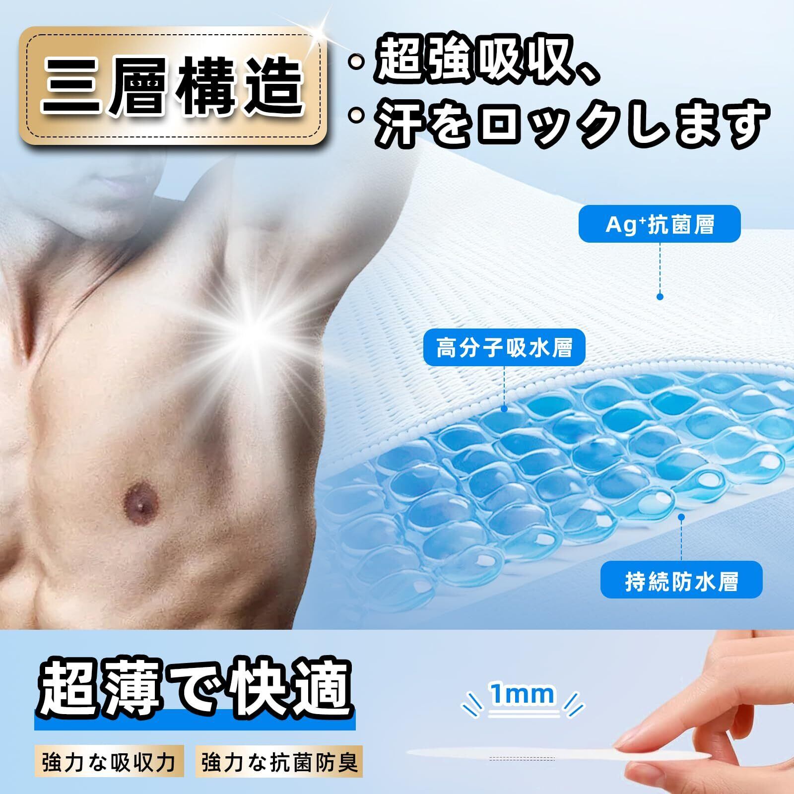 【史上最大サイズ・急速吸収】13*15.4cmの超大サイズで、広範囲の粘着剤と3層構造が大量の汗を素早く吸収し、20mlの汗水も簡単に吸収します。