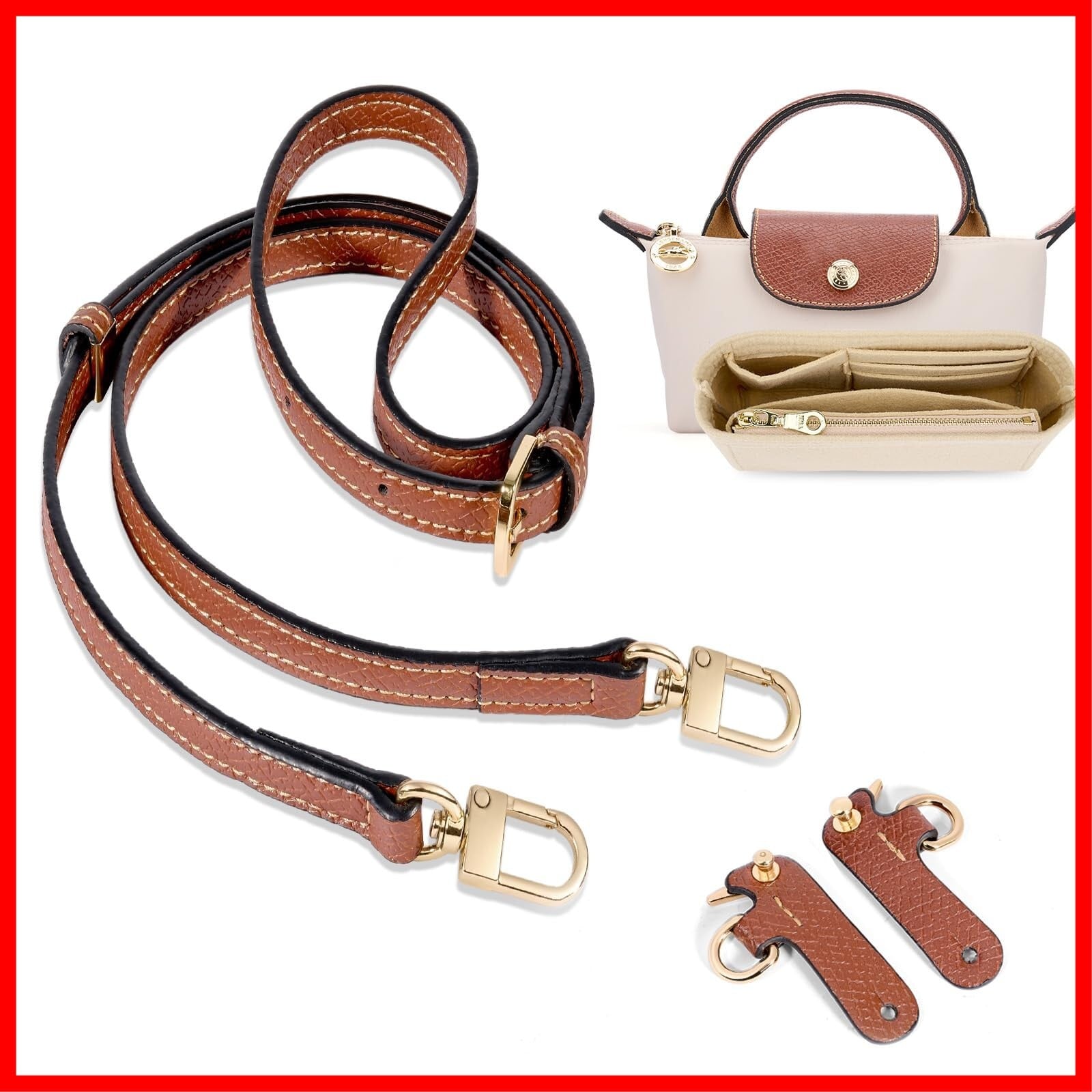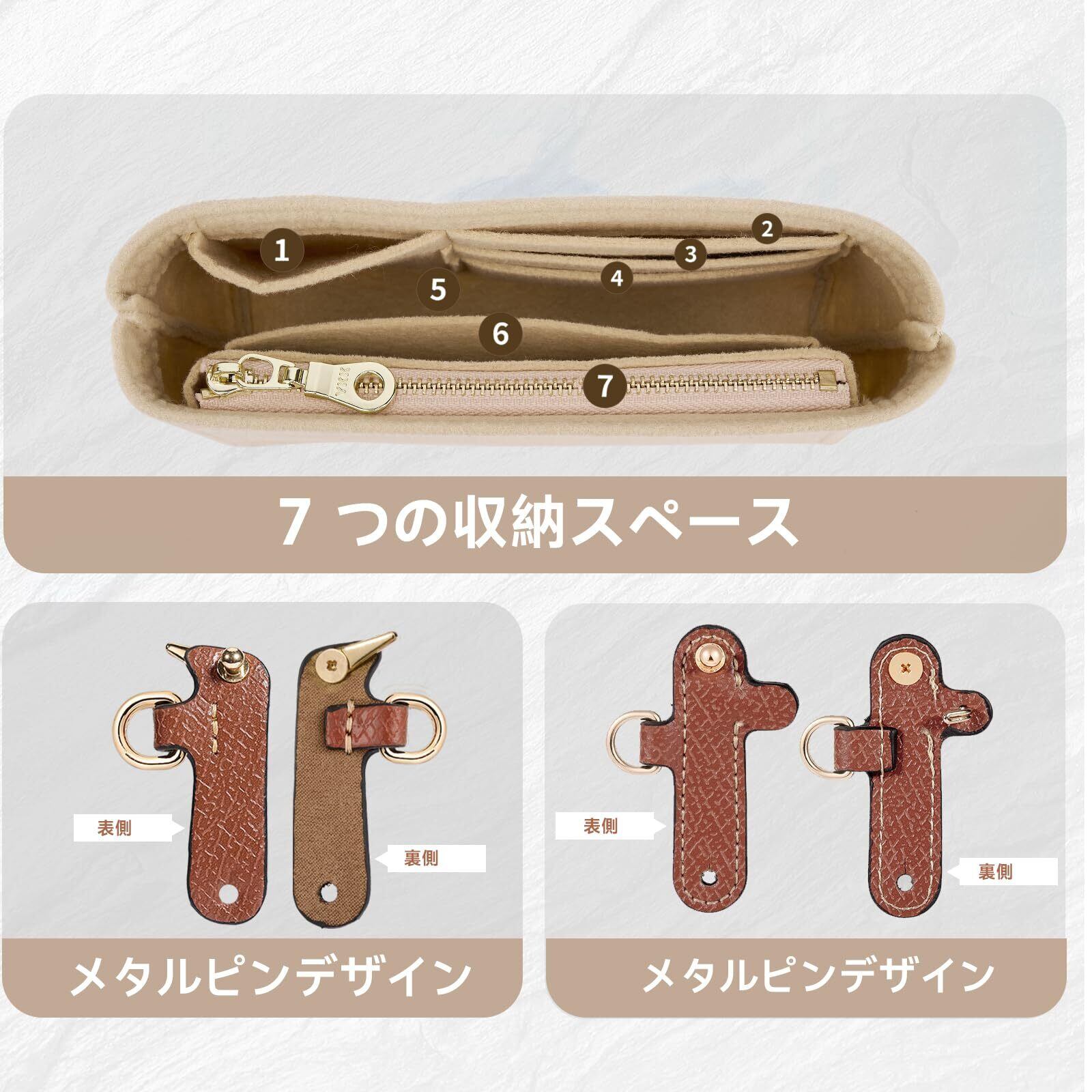 【素材】ストラップ:100%牛革、色あせや磨耗がありません。ハンドバッグオーガナイザーインサート: フェルト。