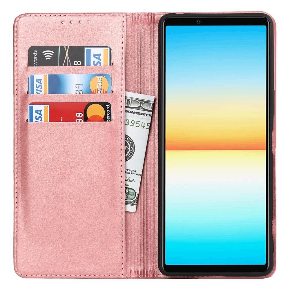 適用 xperia 10 iv スマホケース 手帳型 sony xperia 10 iv カバー 手帳型 xperia 10 iv so-52c ケース 手帳型 sog07 ケース 手帳型 sog07 スマホケース 手帳型 カードスロット、キックスタンド レザー(ローズゴールド)