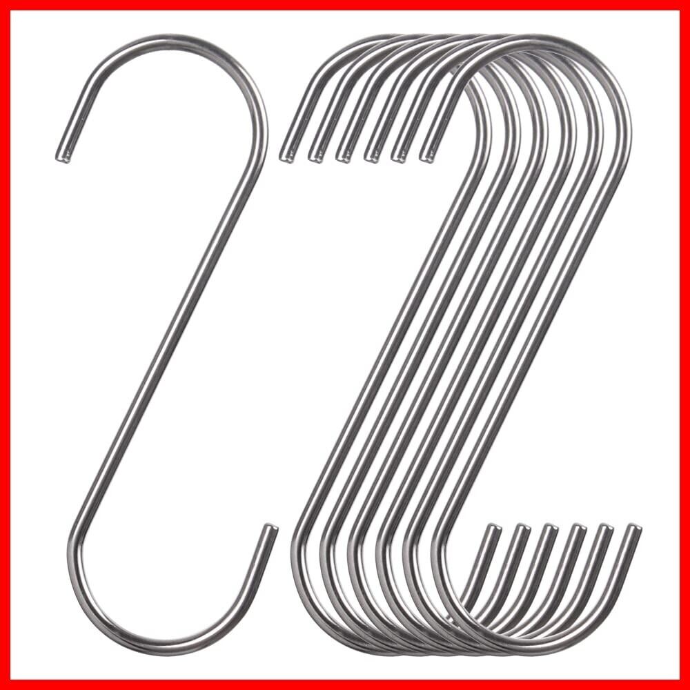 【広い使用範囲】Sフックは非常に実用的でポータブルで、キッチン、クローゼット、浴室、収納室、ワークショップ、オフィス、ガレージに広く適用されています。キッチンで皿、コップなどを懸けて、バスルームでタオルを懸けて、庭で植木鉢を懸けてグリル道具なども懸けます。